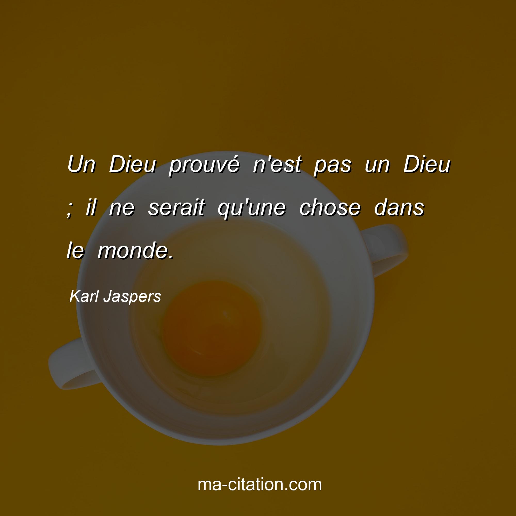 Citation sur la vie de Karl Jaspers :Un Dieu prouvé n'est pas un Dieu ; il ne serait qu'une chose dans le monde.