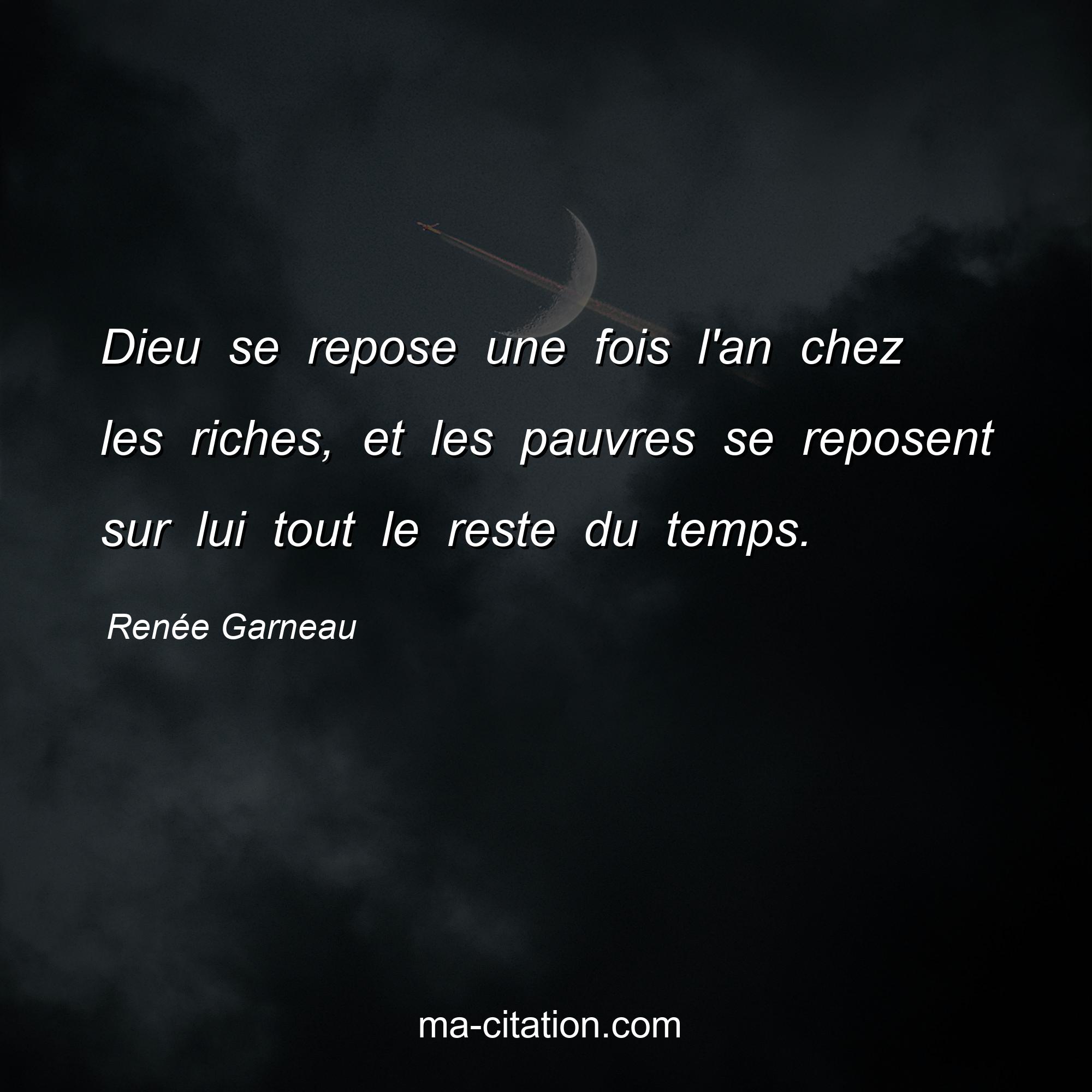 Renée Garneau est l'auteur de la citation sur la vie "Dieu se repose une fois l'an chez les riches, et les pauvres se reposent sur lui tout le reste du temps.".