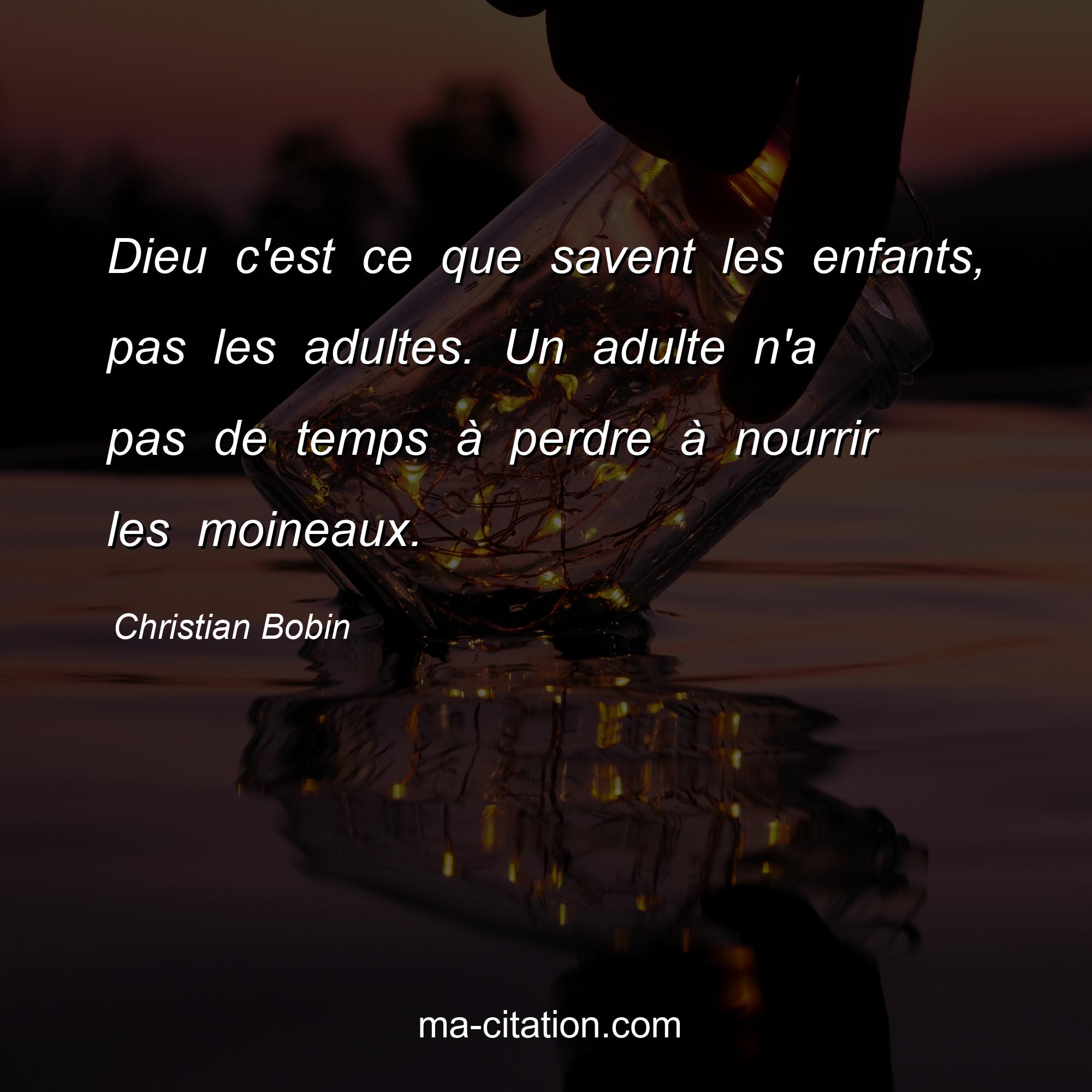 Christian Bobin est l'auteur de la citation sur la vie "Dieu c'est ce que savent les enfants, pas les adultes. Un adulte n'a pas de temps à perdre à nourrir les moineaux.".