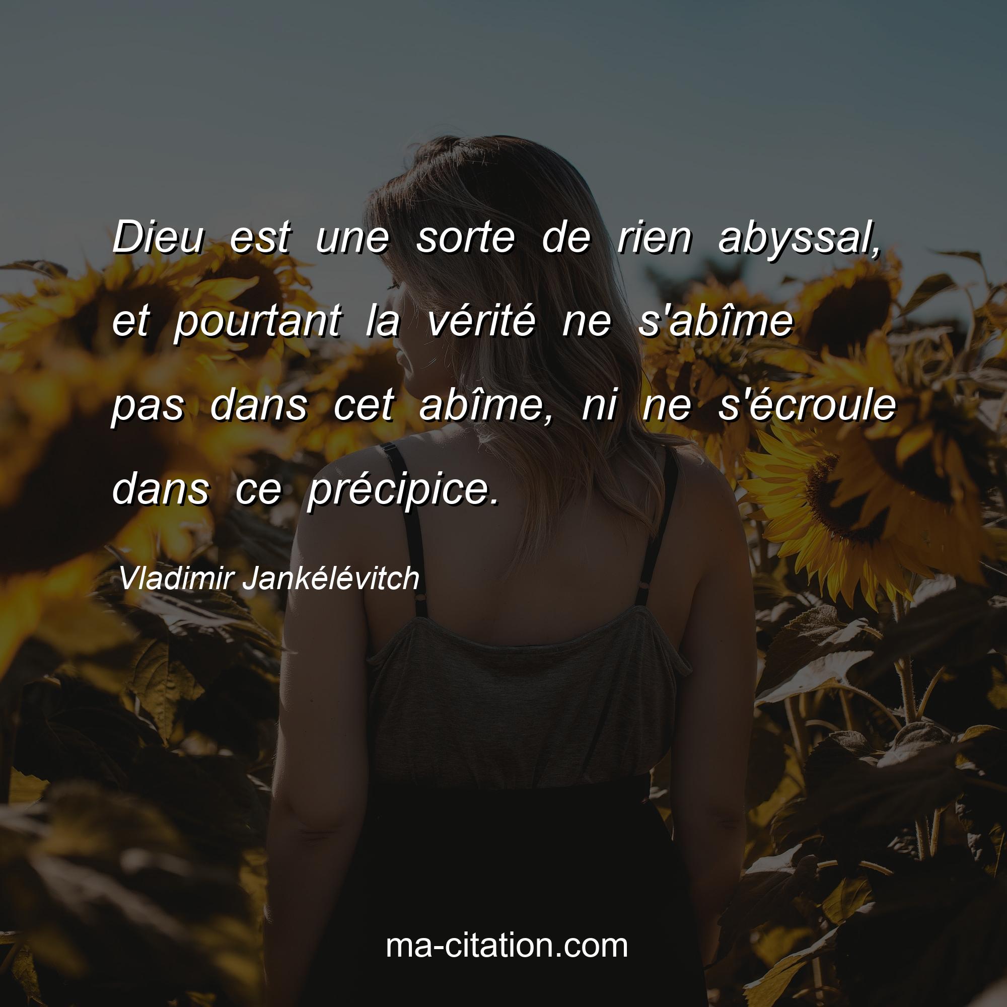 Citation sur la vie de Vladimir Jankélévitch :Dieu est une sorte de rien abyssal, et pourtant la vérité ne s'abîme pas dans cet abîme, ni ne s'écroule dans ce précipice.