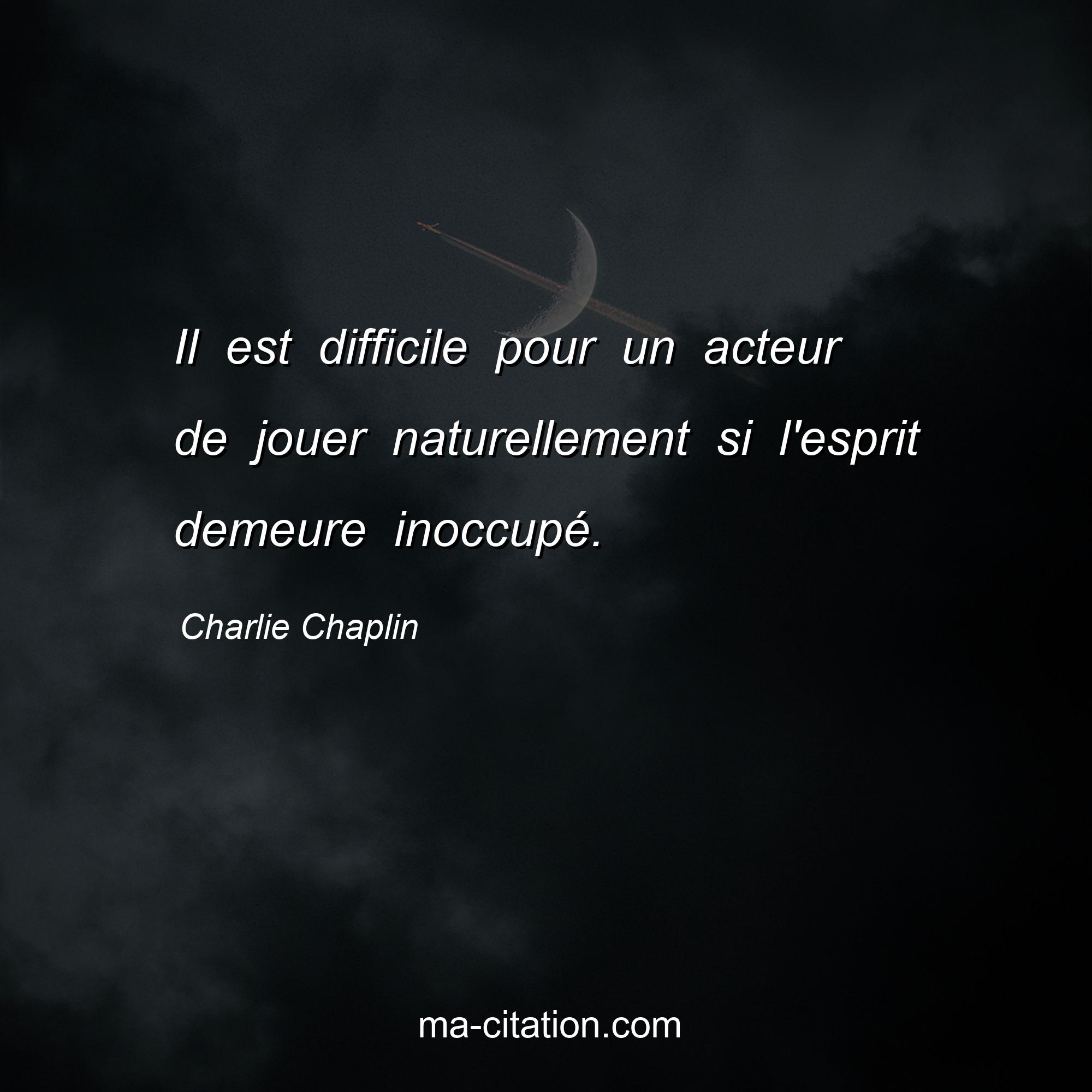 Citation sur la vie de Charlie Chaplin :Il est difficile pour un acteur de jouer naturellement si l'esprit demeure inoccupé.