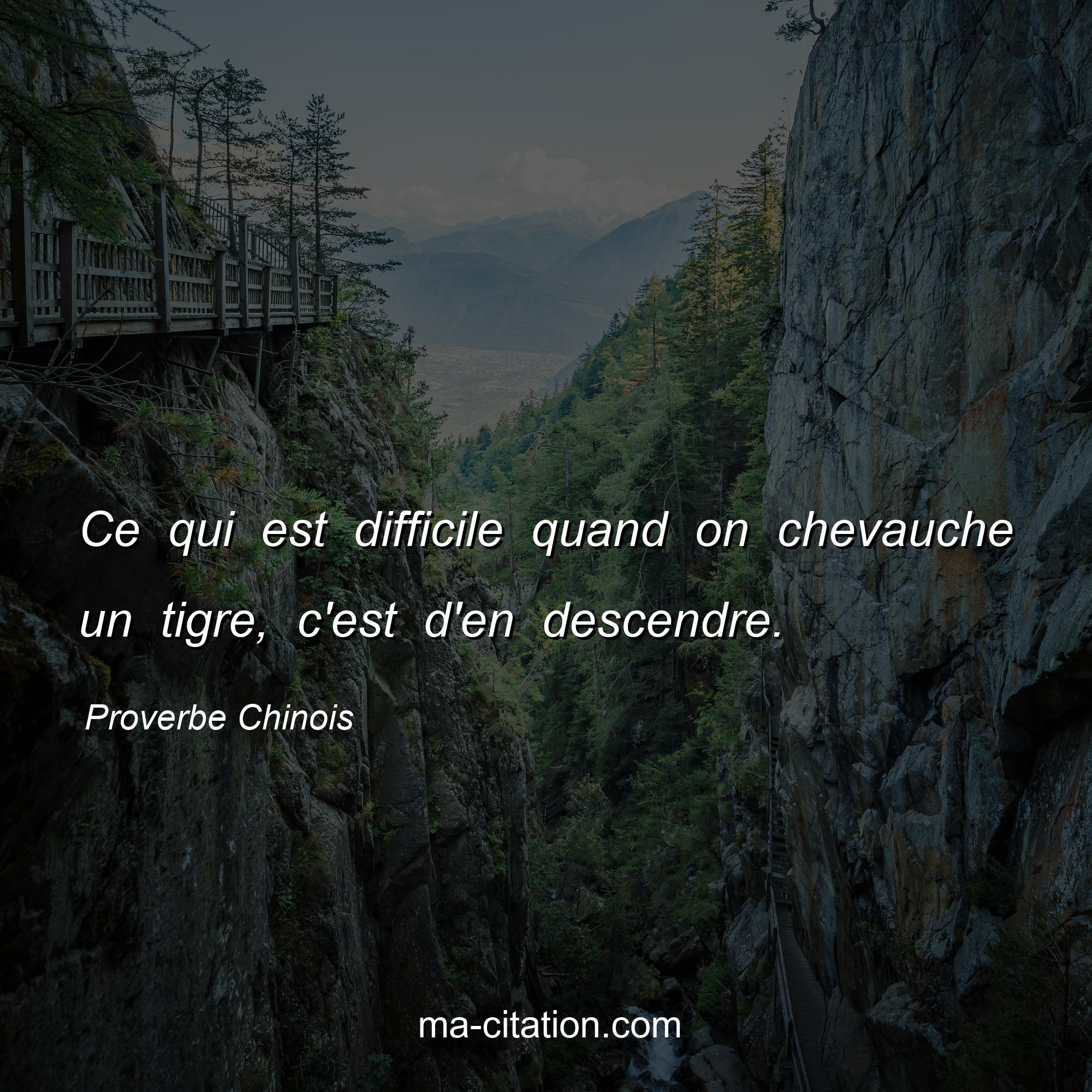 Proverbe Chinois sur la vie :Ce qui est difficile quand on chevauche un tigre, c'est d'en descendre.