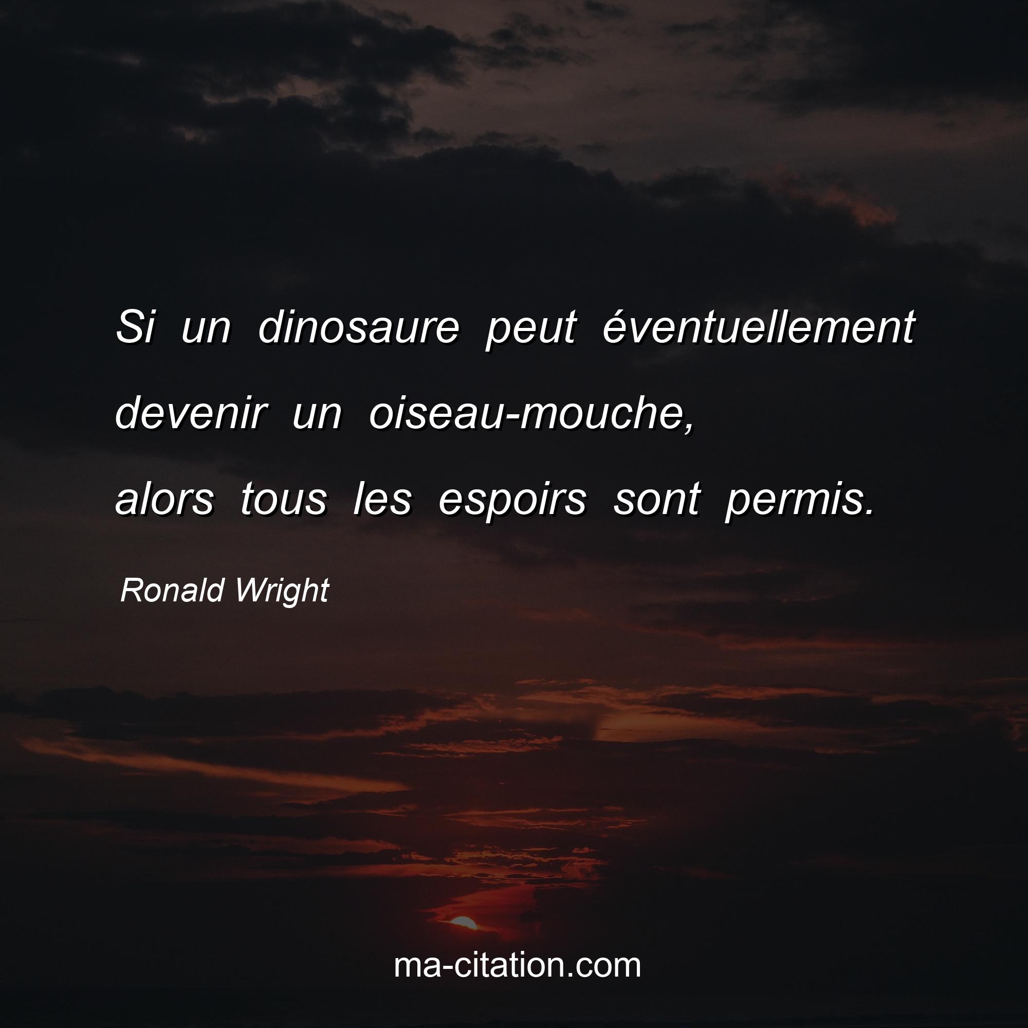 Citation sur la vie de Ronald Wright :Si un dinosaure peut éventuellement devenir un oiseau-mouche, alors tous les espoirs sont permis.