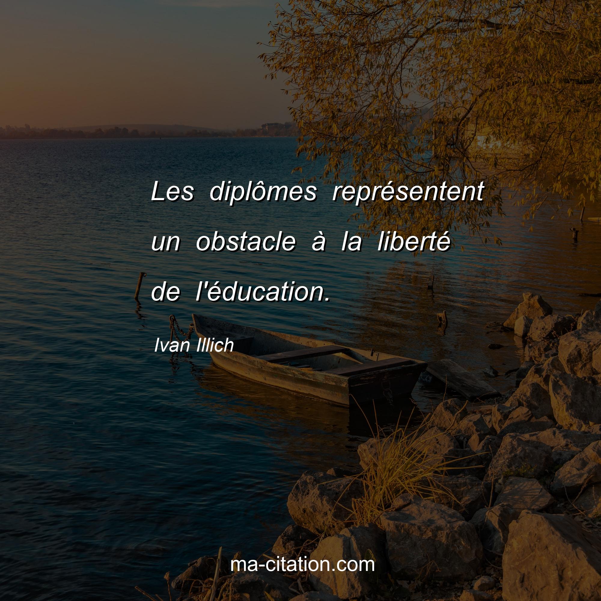 Citation sur la vie d'Ivan Illich :Les diplômes représentent un obstacle à la liberté de l'éducation.