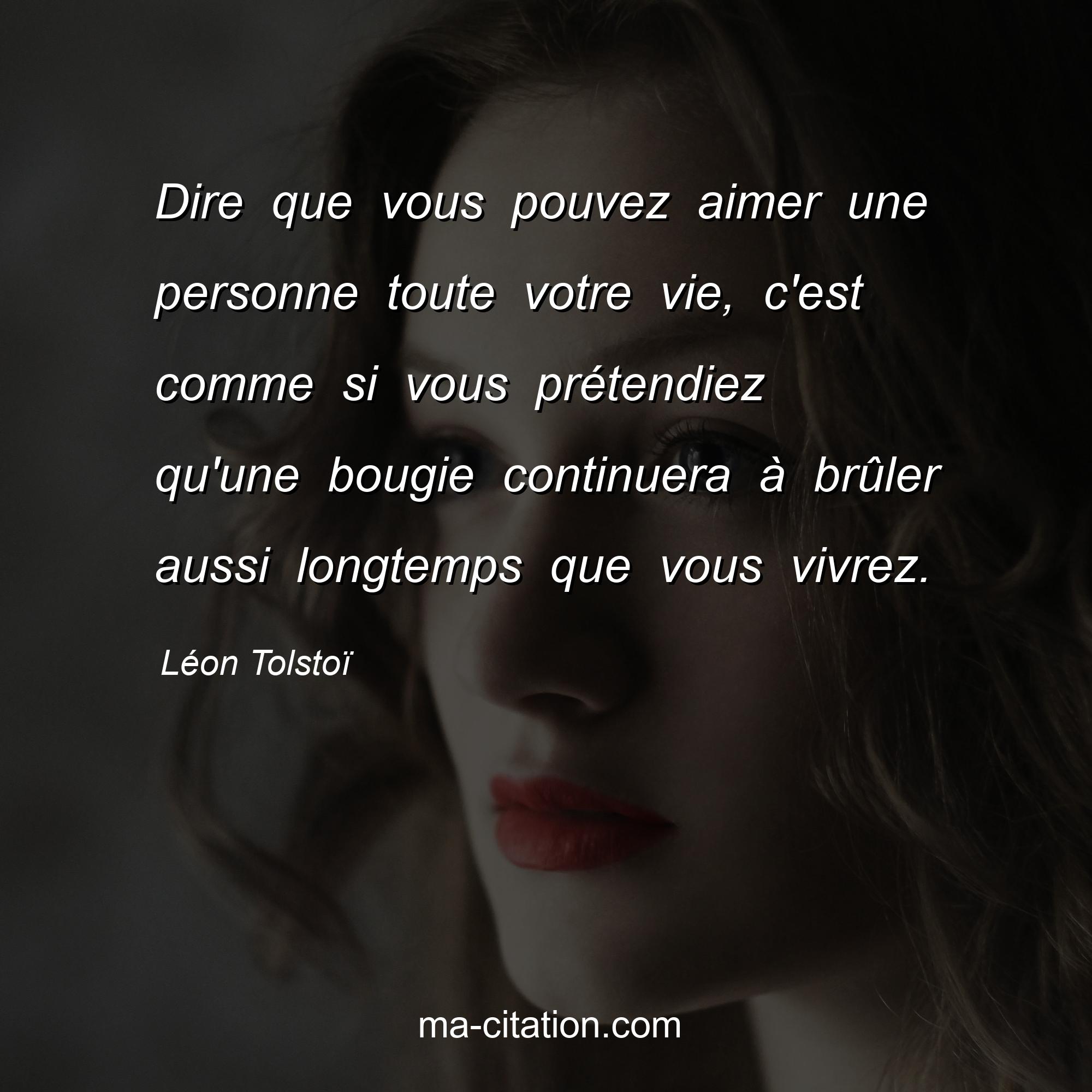 Citation sur la vie de Léon Tolstoï :Dire que vous pouvez aimer une personne toute votre vie, c'est comme si vous prétendiez qu'une bougie continuera à brûler aussi longtemps que vous vivrez.