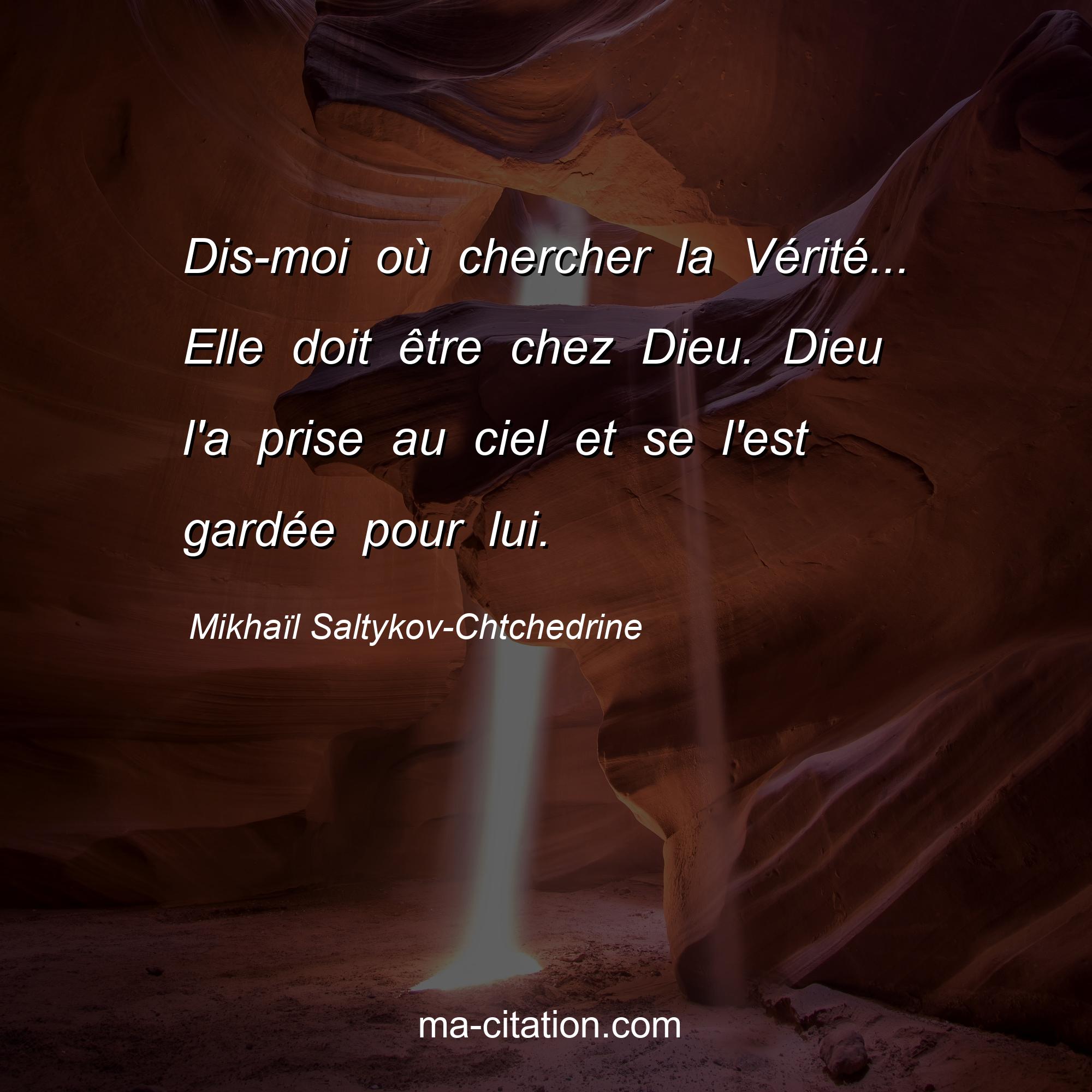 Citation sur la vie de Mikhaïl Saltykov-Chtchedrine :Dis-moi où chercher la Vérité... Elle doit être chez Dieu. Dieu l'a prise au ciel et se l'est gardée pour lui.