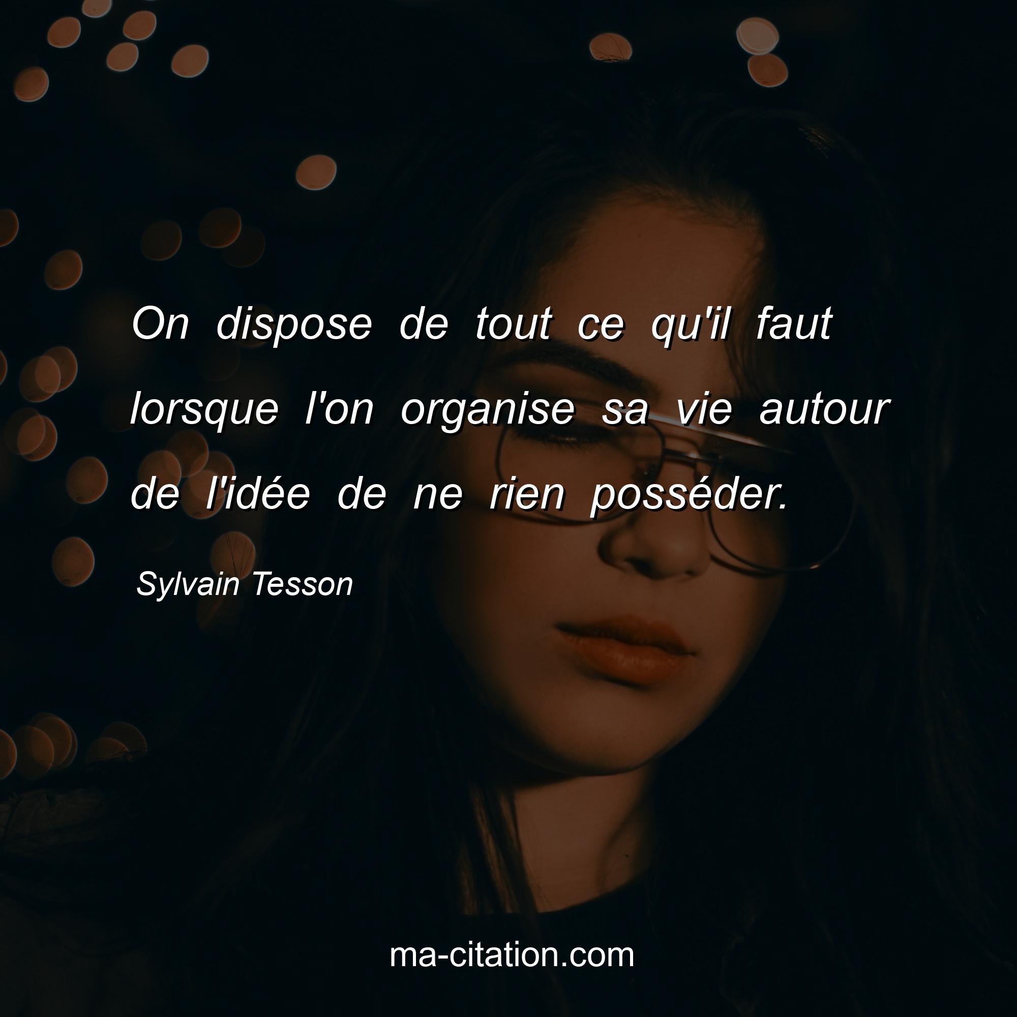 Citation sur la vie de Sylvain Tesson :On dispose de tout ce qu'il faut lorsque l'on organise sa vie autour de l'idée de ne rien posséder.