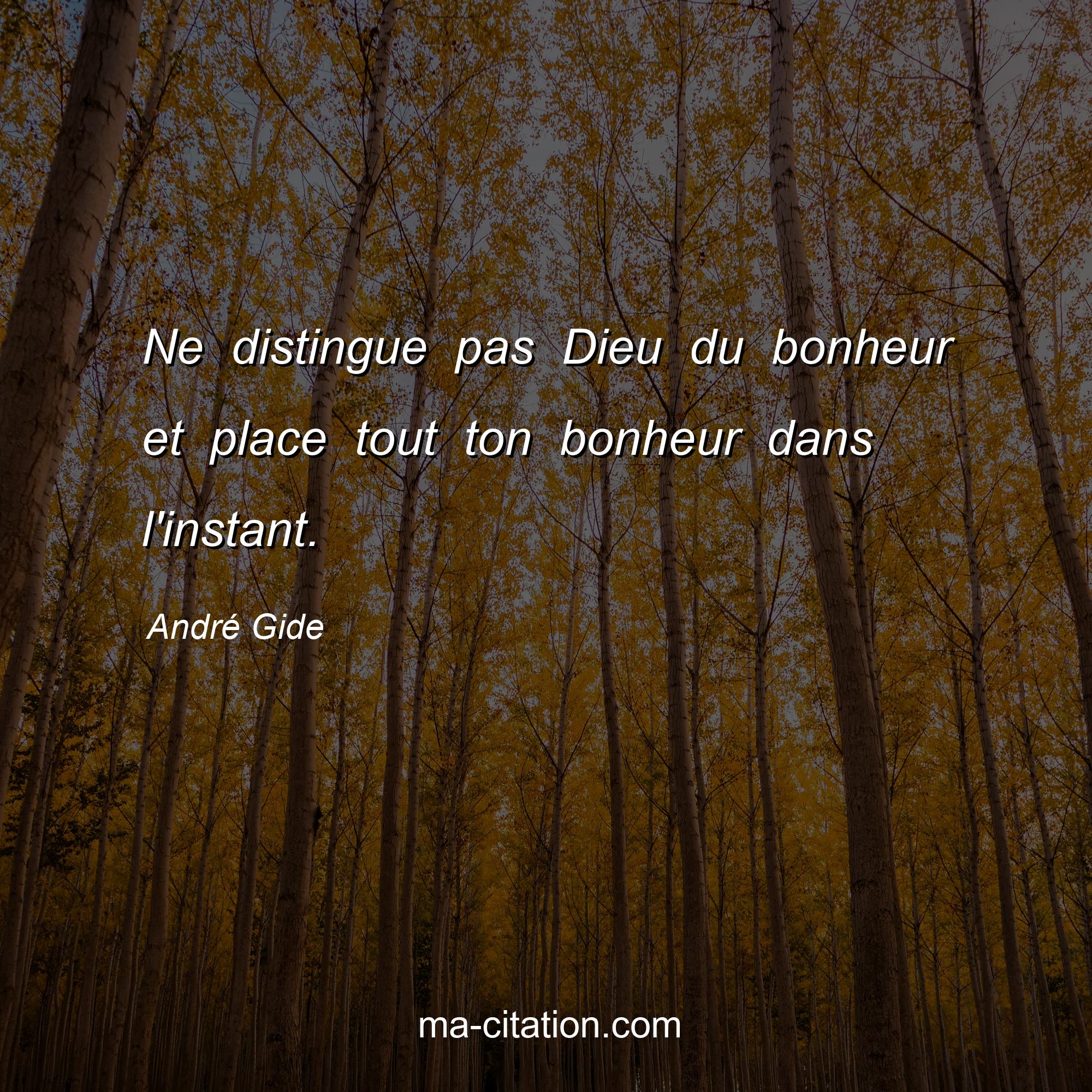 Citation sur la vie d'André Gide :Ne distingue pas Dieu du bonheur et place tout ton bonheur dans l'instant.