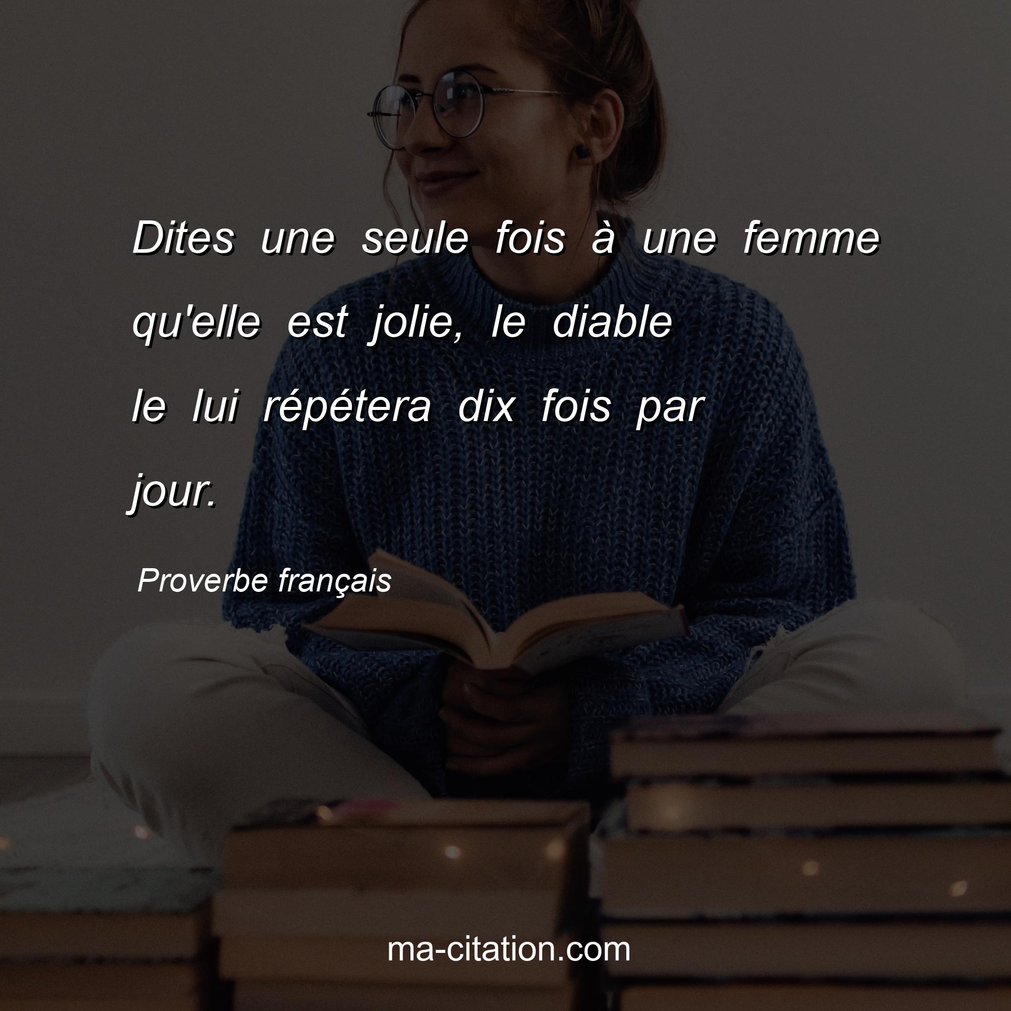 Proverbe français sur la vie :Dites une seule fois à une femme qu'elle est jolie, le diable le lui répétera dix fois par jour.