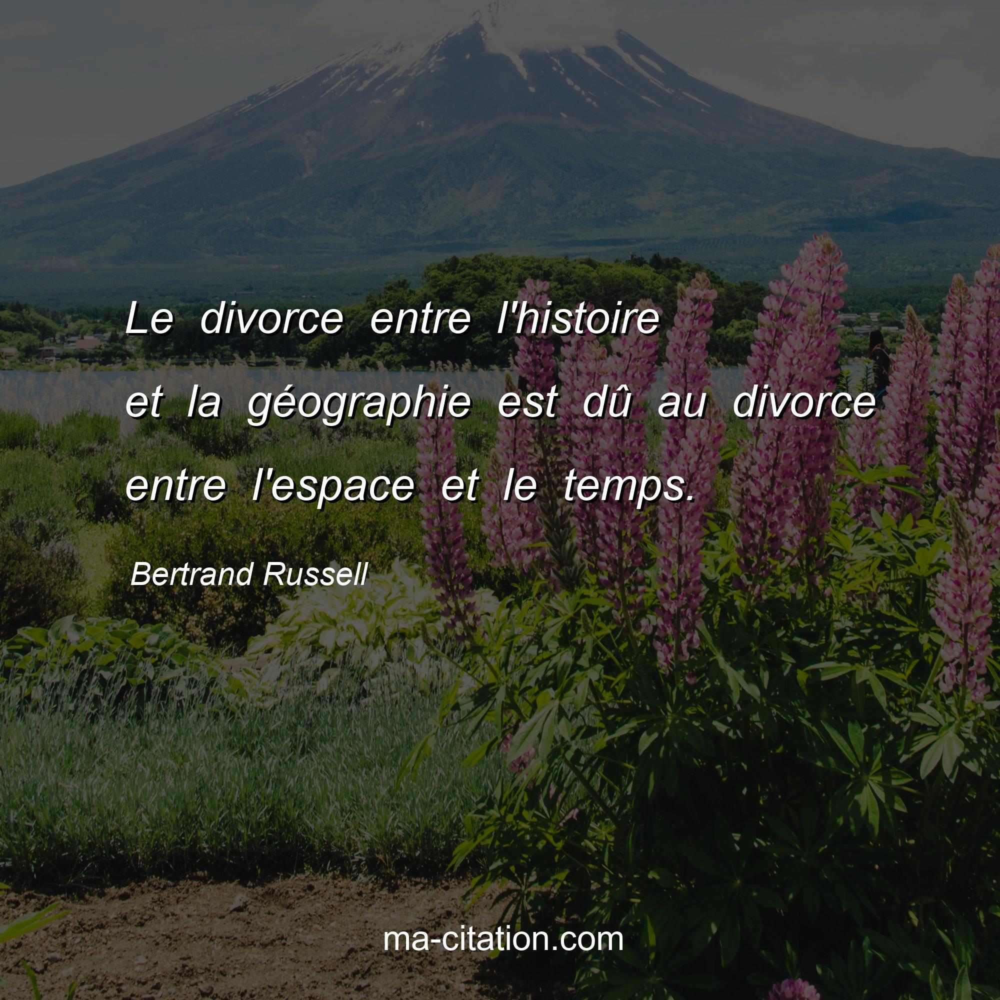 Citation sur la vie de Bertrand Russell :Le divorce entre l'histoire et la géographie est dû au divorce entre l'espace et le temps.