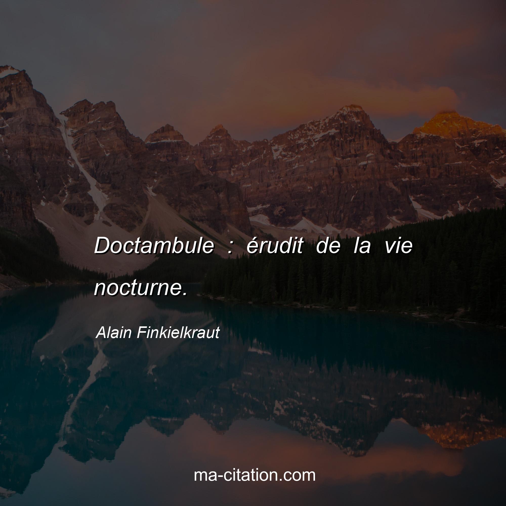 Citation sur la vie d'Alain Finkielkraut :Doctambule : érudit de la vie nocturne.
