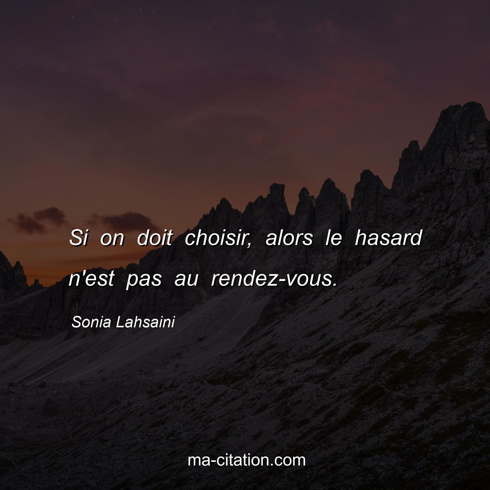 Citation sur la vie de Sonia Lahsaini :Si on doit choisir, alors le hasard n'est pas au rendez-vous.