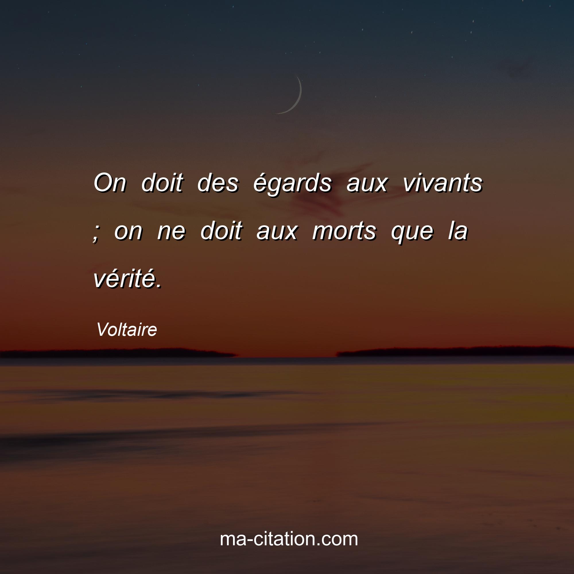 Citation sur la vie de Voltaire :On doit des égards aux vivants ; on ne doit aux morts que la vérité.