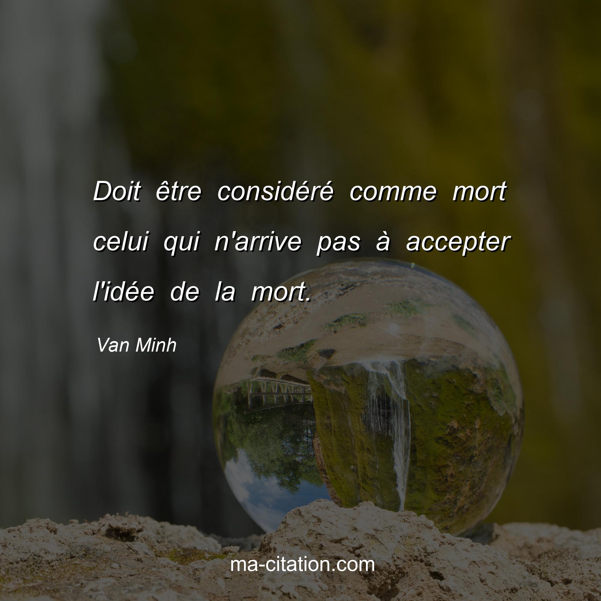 Van Minh est l'auteur de la citation sur la vie "Doit être considéré comme mort celui qui n'arrive pas à accepter l'idée de la mort.".