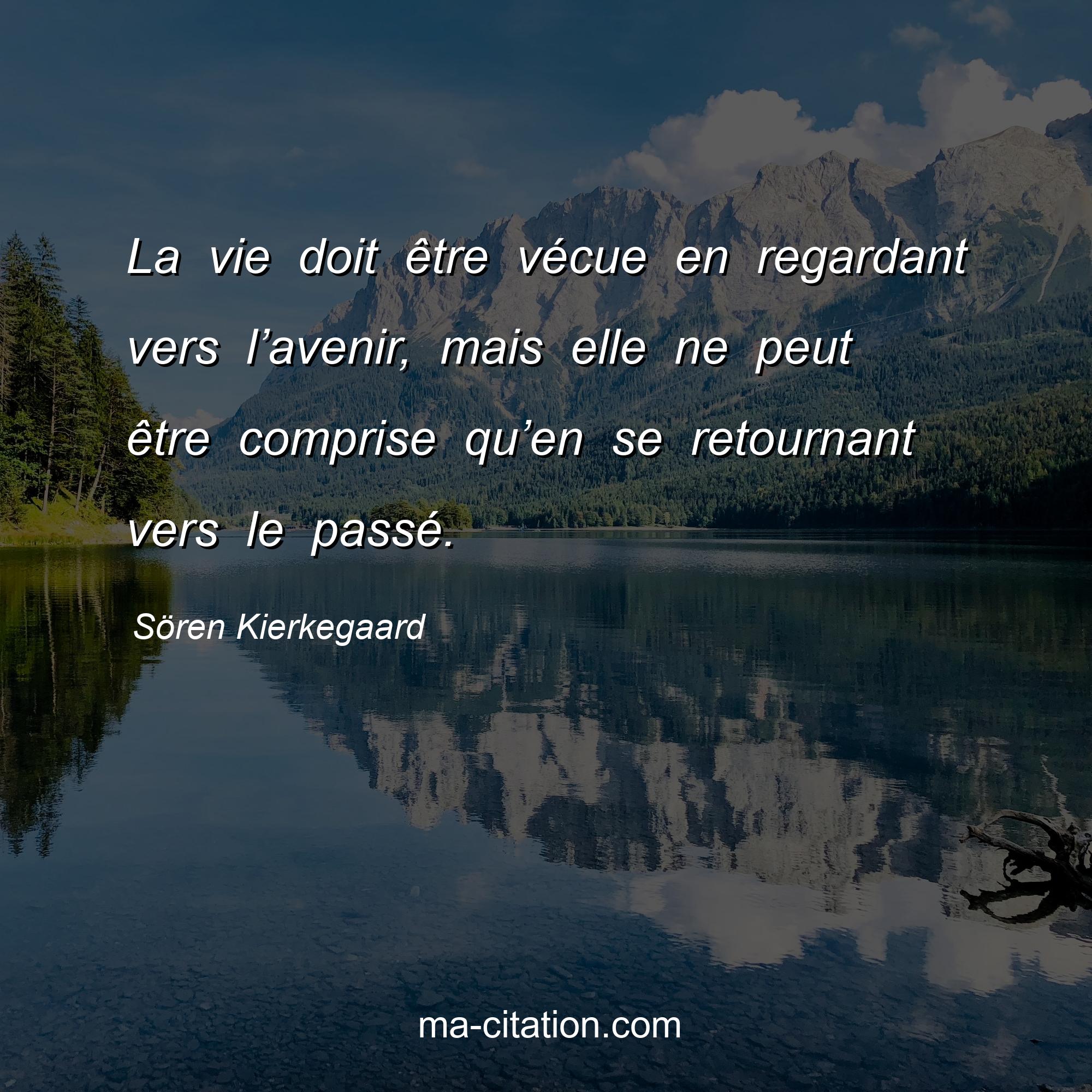Citation sur la vie de Sören Kierkegaard :La vie doit être vécue en regardant vers l’avenir, mais elle ne peut être comprise qu’en se retournant vers le passé.