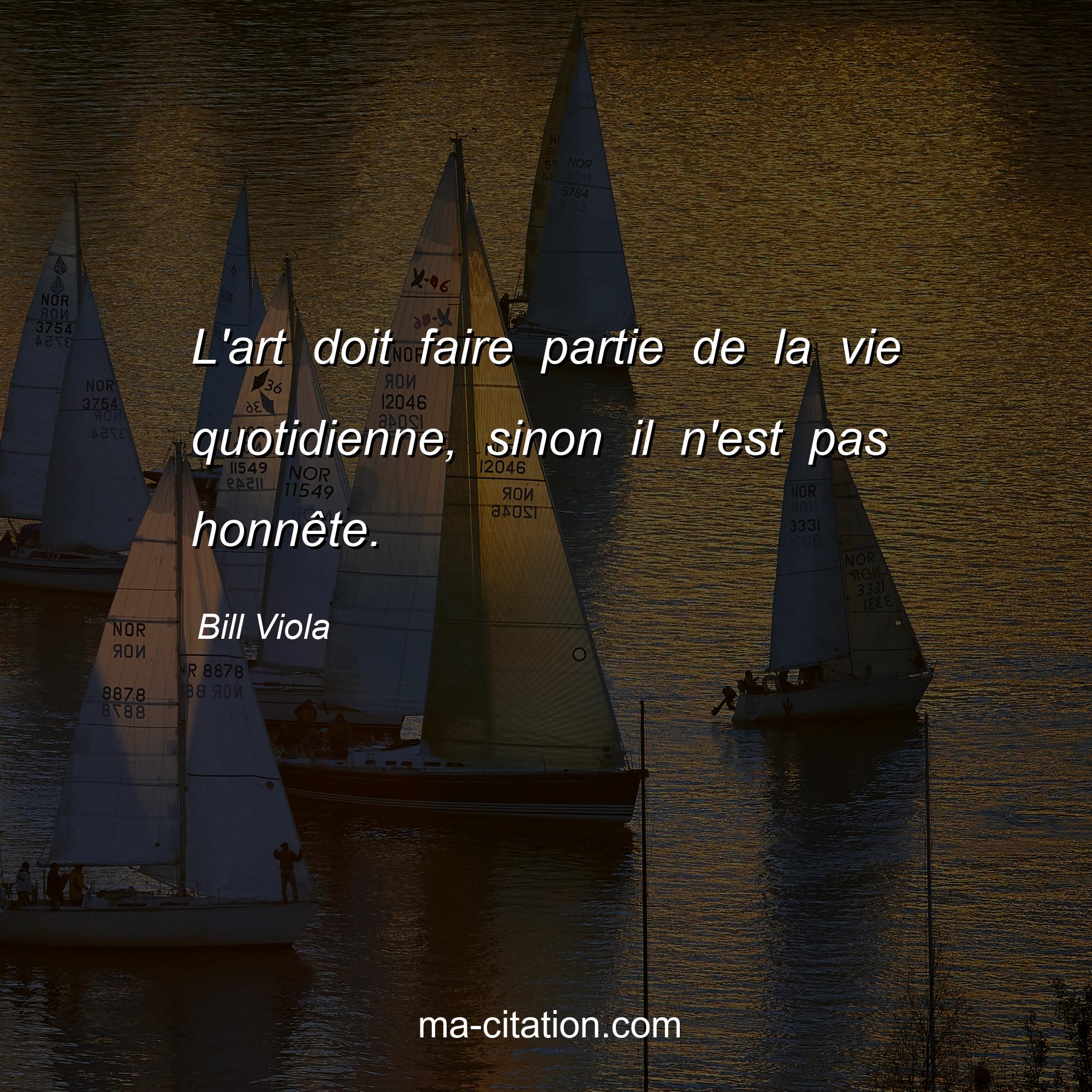 Bill Viola est l'auteur de la citation sur la vie "L'art doit faire partie de la vie quotidienne, sinon il n'est pas honnête.".