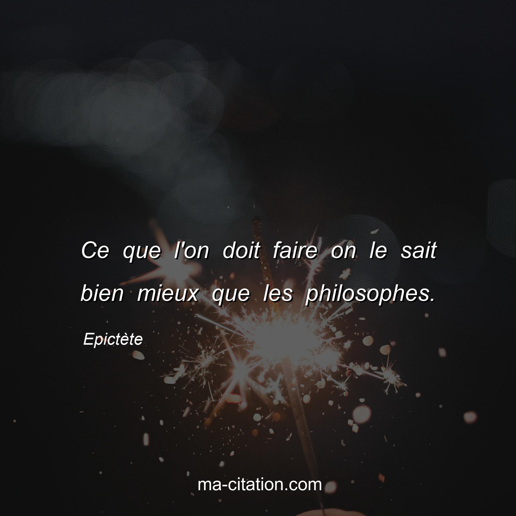 Citation sur la vie d'Epictète :Ce que l'on doit faire on le sait bien mieux que les philosophes.