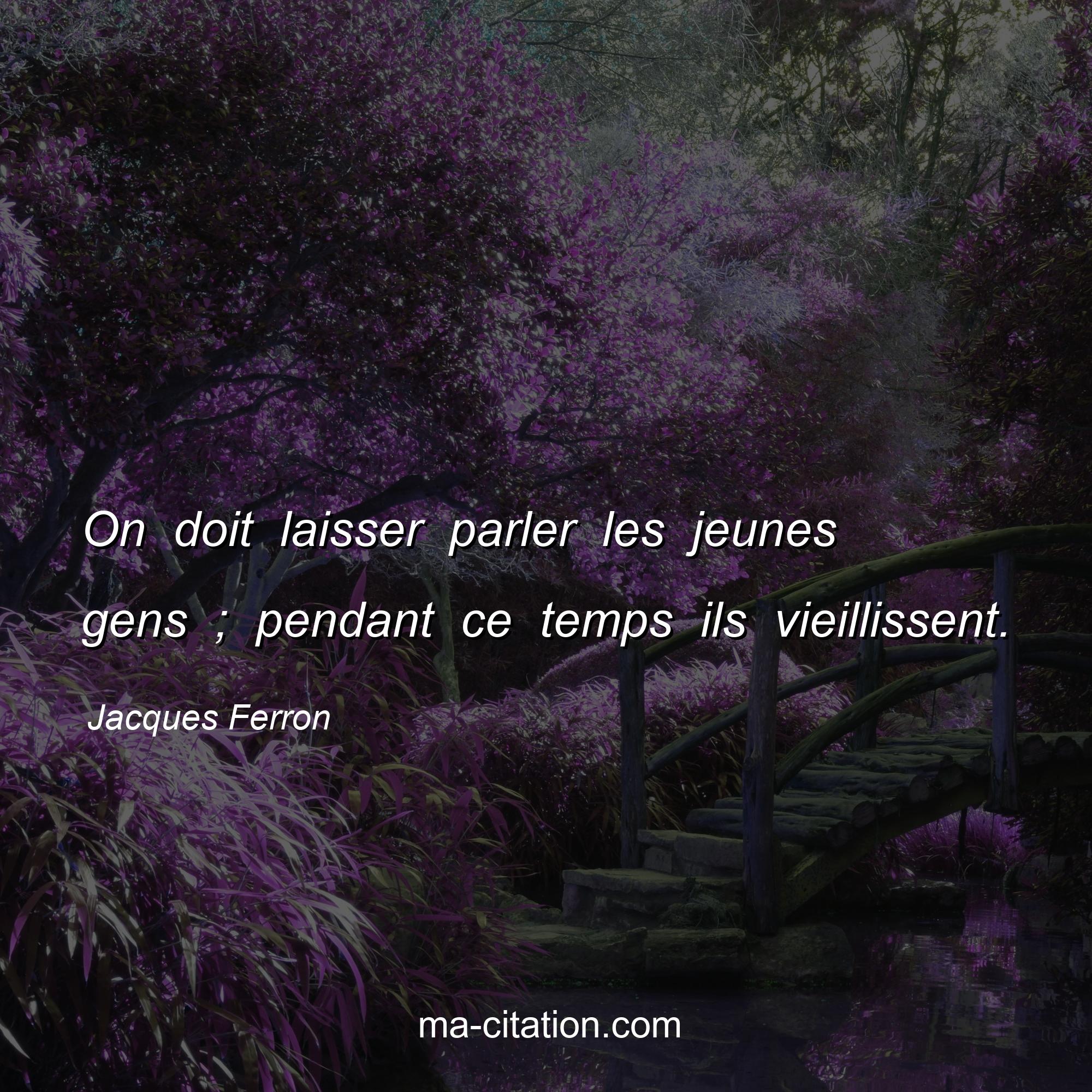 Citation sur la vie de Jacques Ferron :On doit laisser parler les jeunes gens ; pendant ce temps ils vieillissent.