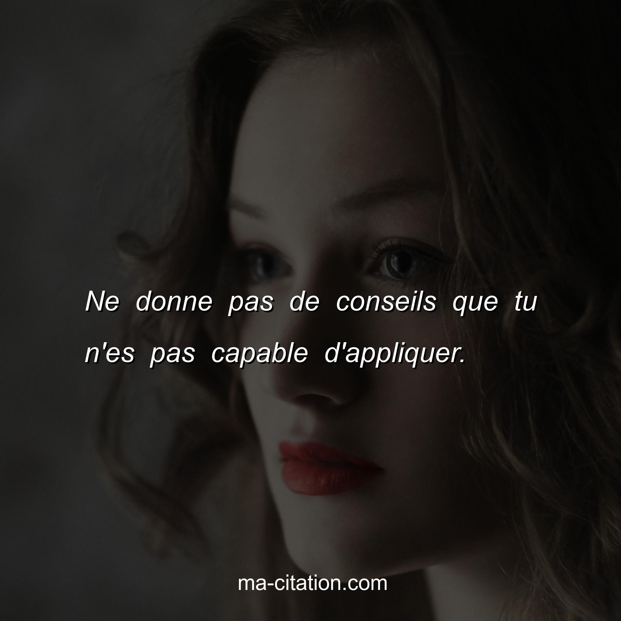 Citation sur la vie :Ne donne pas de conseils que tu n'es pas capable d'appliquer.