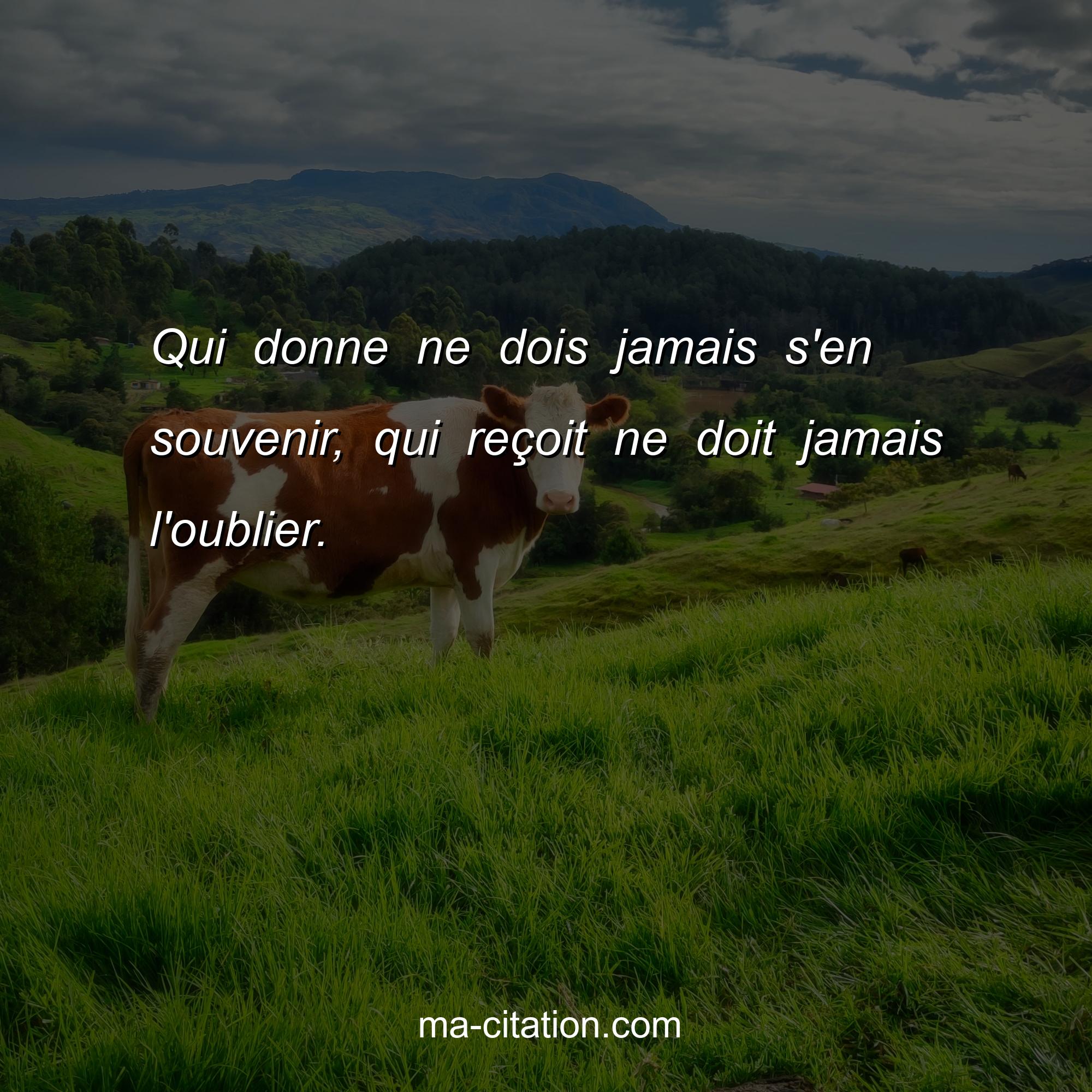 Qui donne ne dois jamais s'en souvenir, qui reçoit ne doit jamais l'oublier.