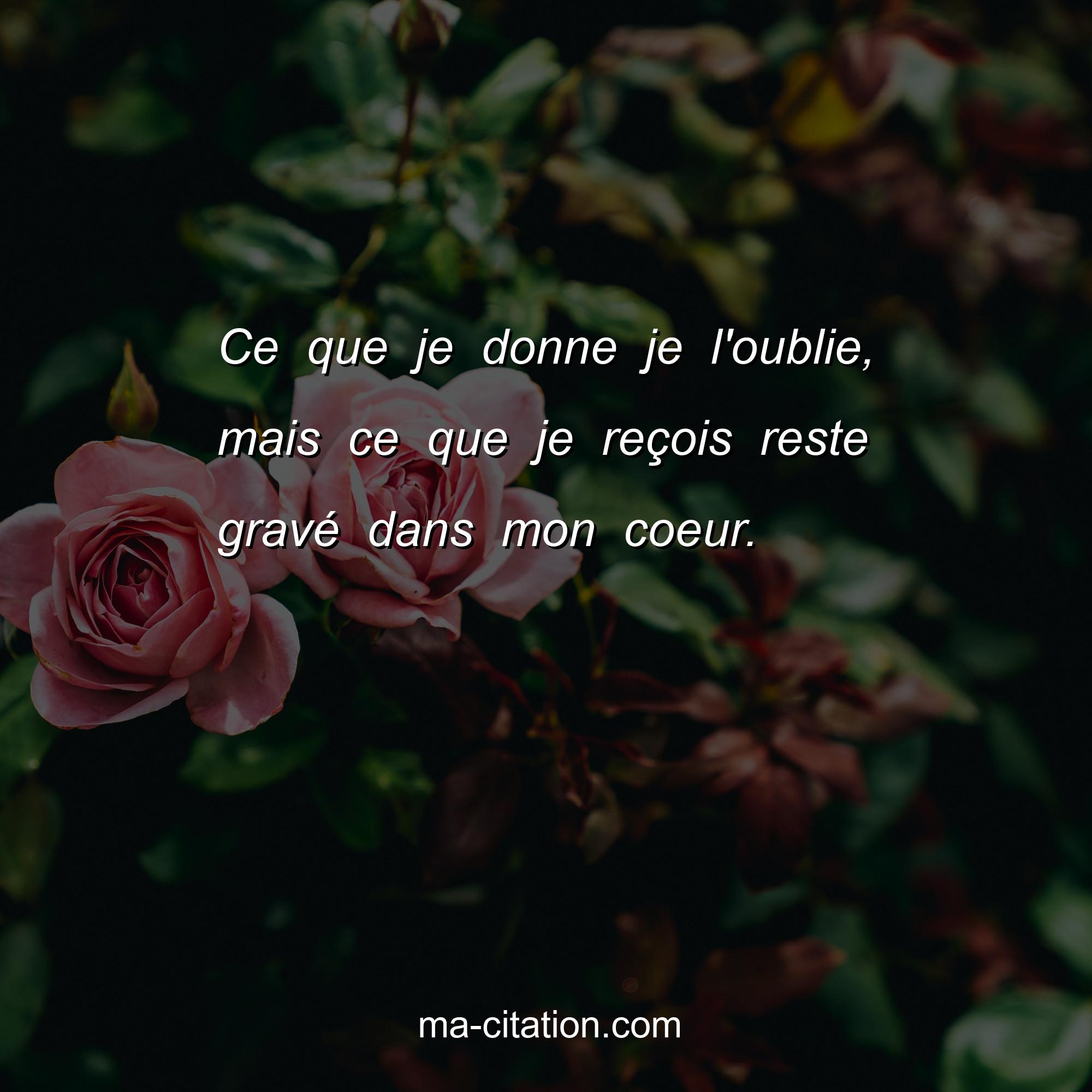 Ce que je donne je l'oublie, mais ce que je reçois reste gravé dans mon coeur.