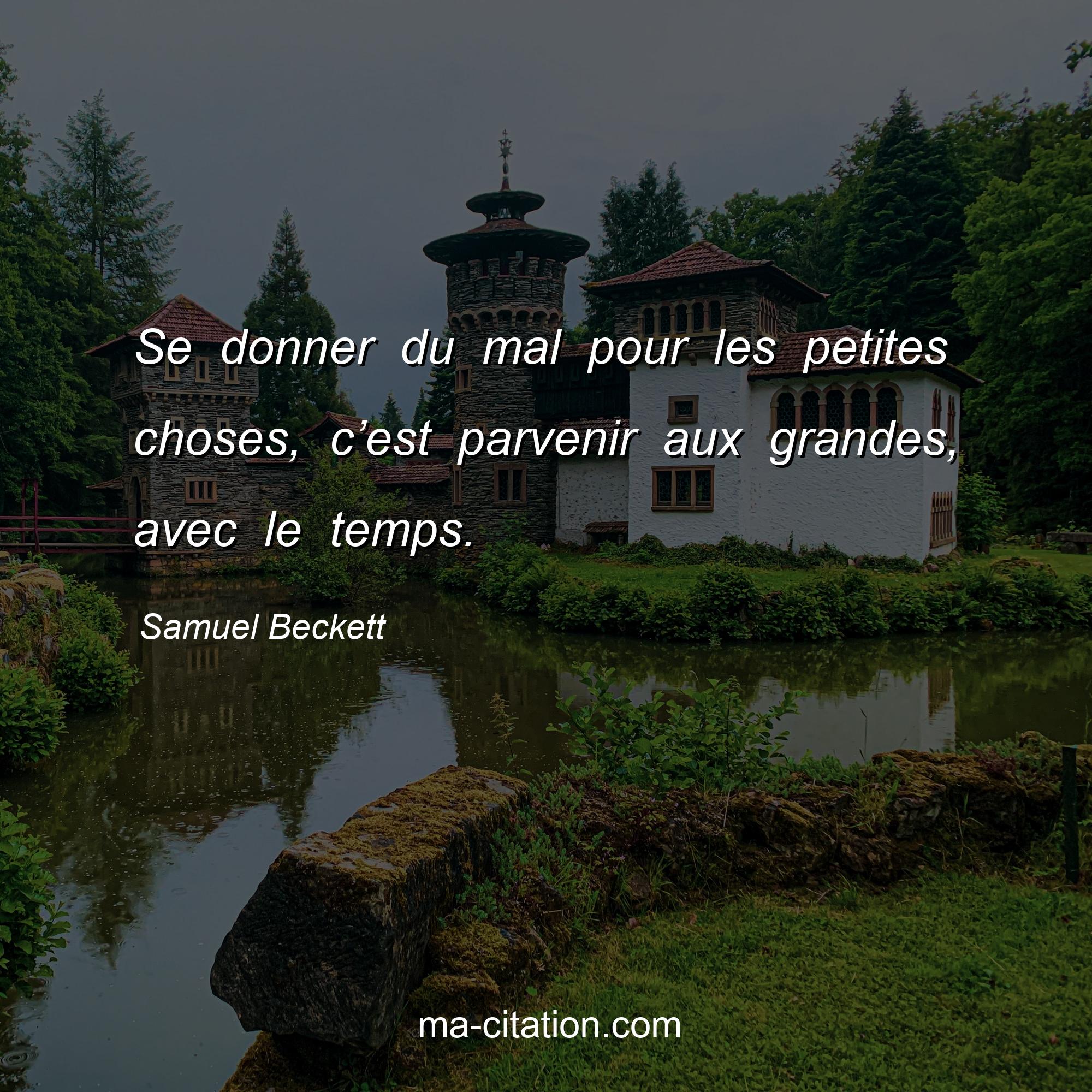 Citation sur la vie de Samuel Beckett :Se donner du mal pour les petites choses, c’est parvenir aux grandes, avec le temps.
