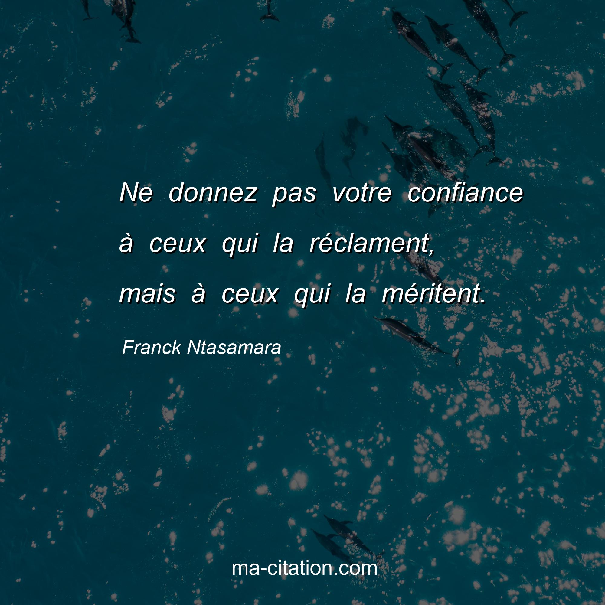 Franck Ntasamara est l'auteur de la citation sur la vie "Ne donnez pas votre confiance à ceux qui la réclament, mais à ceux qui la méritent.".