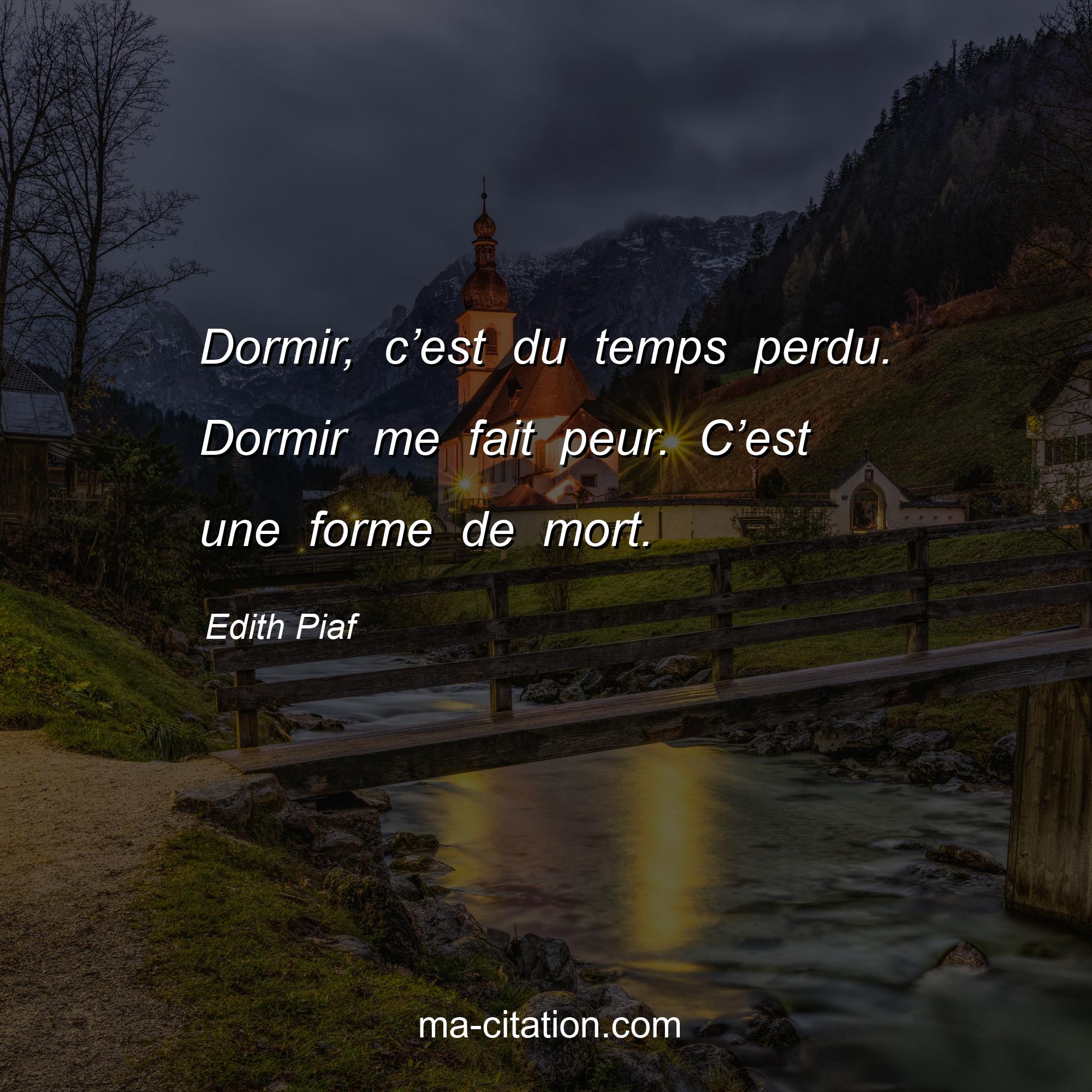Citation sur la vie d'Edith Piaf :Dormir, c’est du temps perdu. Dormir me fait peur. C’est une forme de mort.