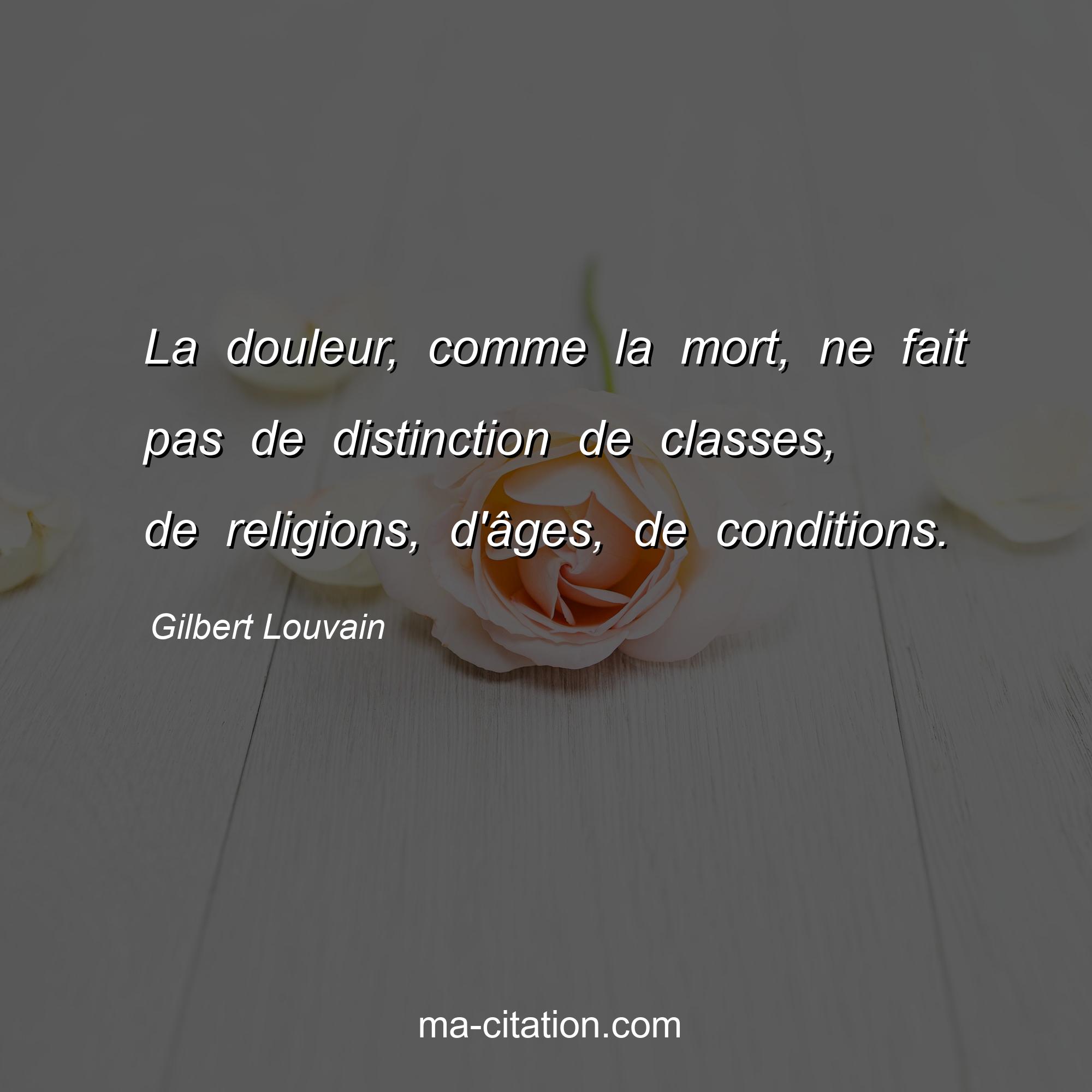 Citation sur la vie de Gilbert Louvain :La douleur, comme la mort, ne fait pas de distinction de classes, de religions, d'âges, de conditions.
