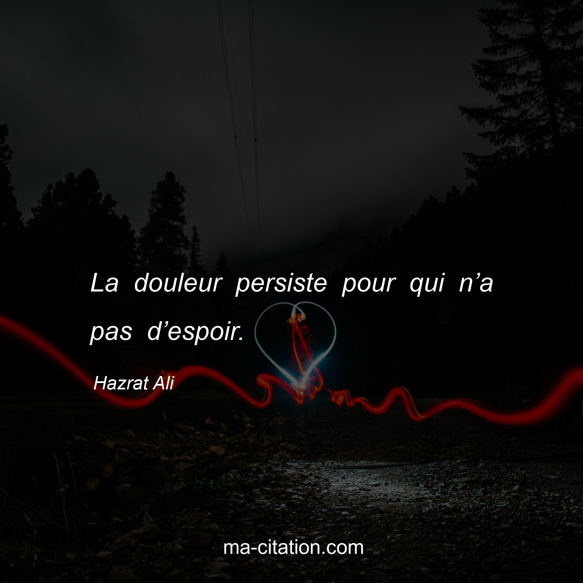 Hazrat Ali est l'auteur de la citation sur la vie "La douleur persiste pour qui n’a pas d’espoir.".