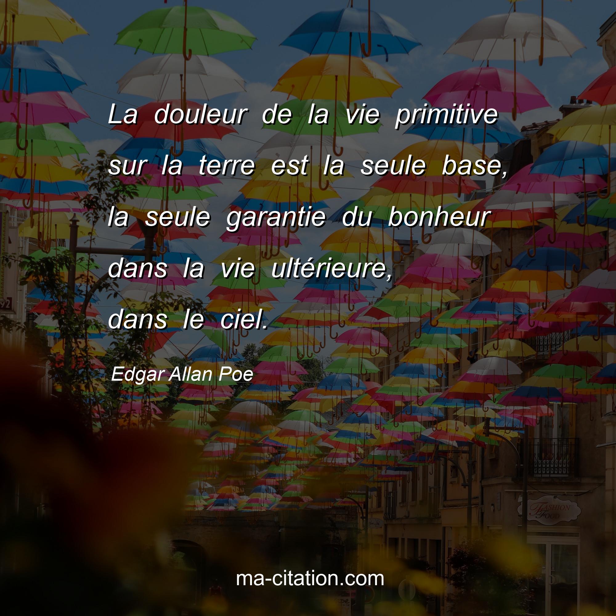 Citation sur la vie d'Edgar Allan Poe :La douleur de la vie primitive sur la terre est la seule base, la seule garantie du bonheur dans la vie ultérieure, dans le ciel.
