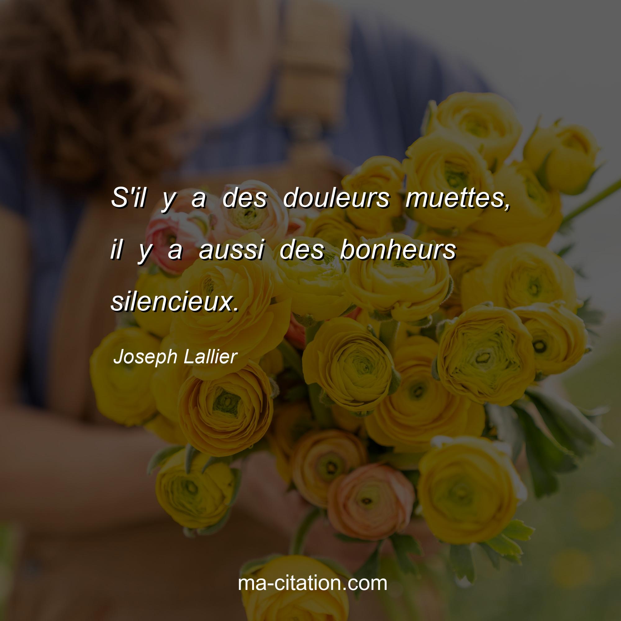 Joseph Lallier est l'auteur de la citation sur la vie "S'il y a des douleurs muettes, il y a aussi des bonheurs silencieux.".