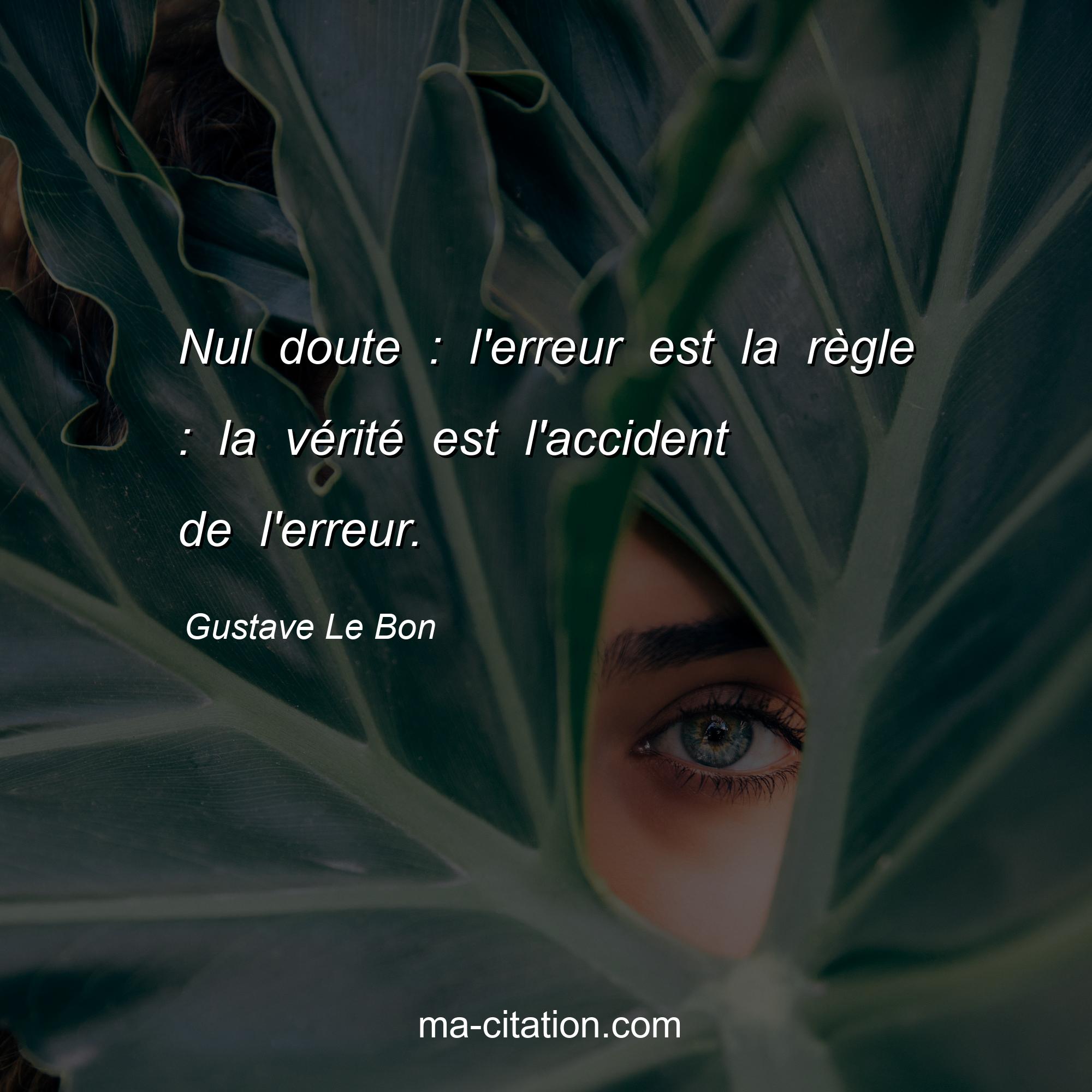 Citation sur la vie de Gustave Le Bon :Nul doute : l'erreur est la règle : la vérité est l'accident de l'erreur.