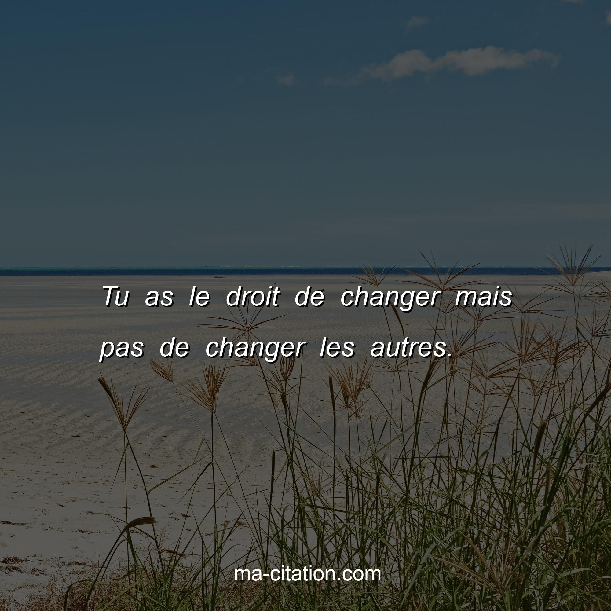 Citation sur la vie :Tu as le droit de changer mais pas de changer les autres.