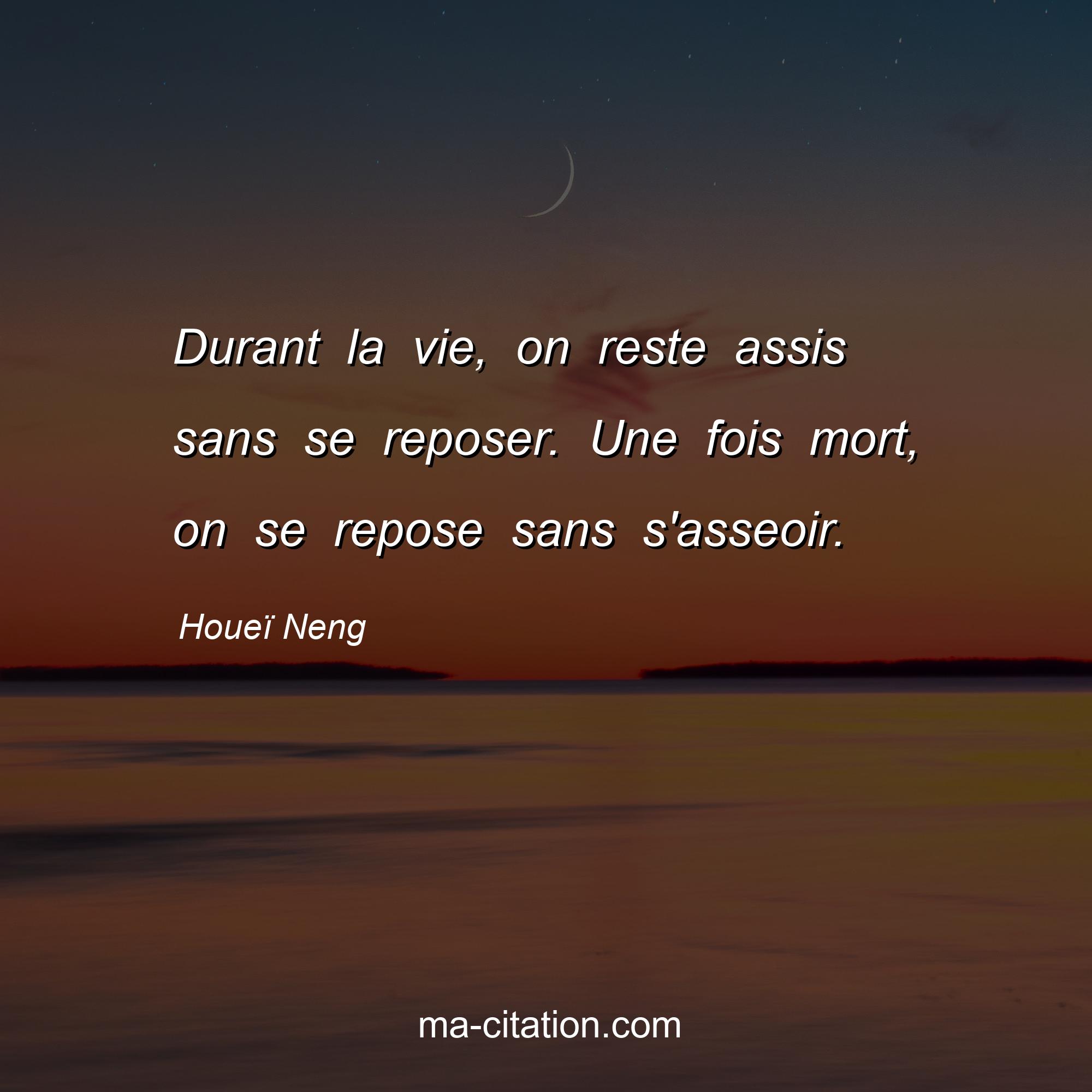 Houeï Neng est l'auteur de la citation sur la vie "Durant la vie, on reste assis sans se reposer. Une fois mort, on se repose sans s'asseoir.".