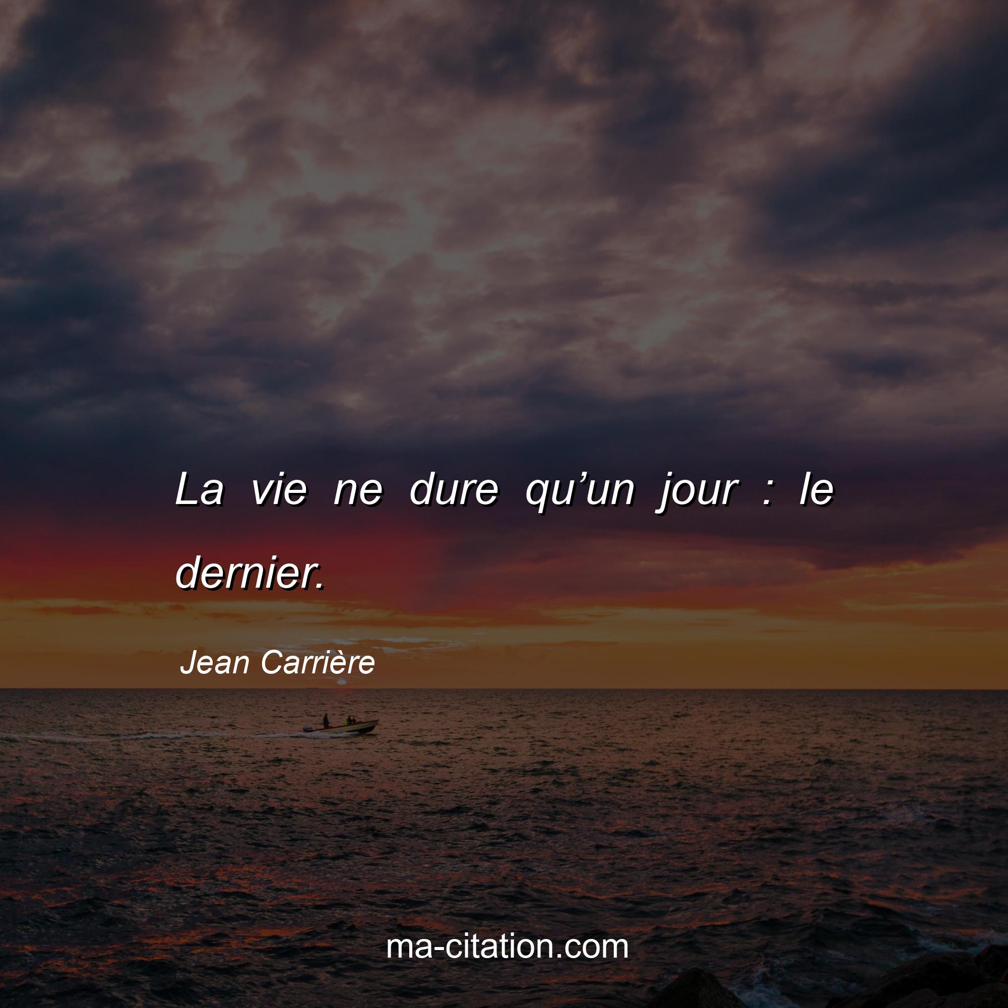 Citation sur la vie de Jean Carrière :La vie ne dure qu’un jour : le dernier.