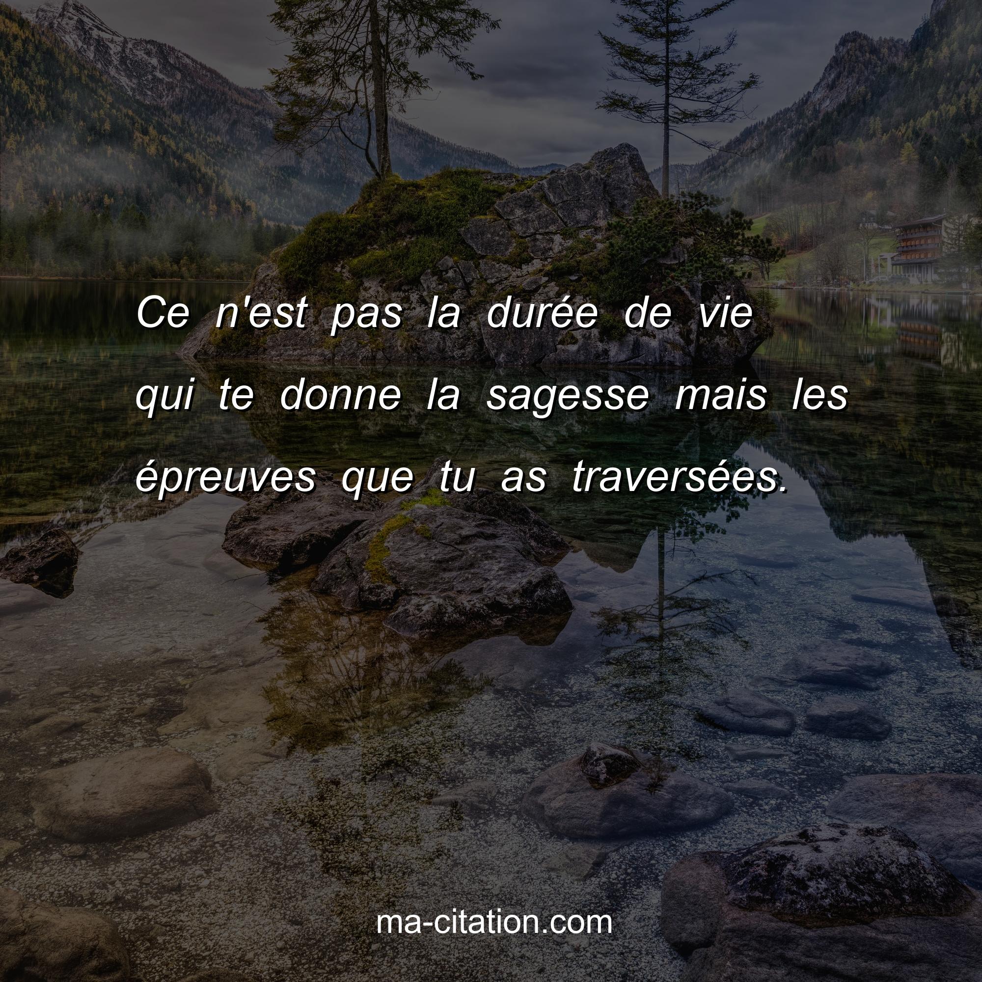 Ce n'est pas la durée de vie qui te donne la sagesse mais les épreuves que tu as traversées.