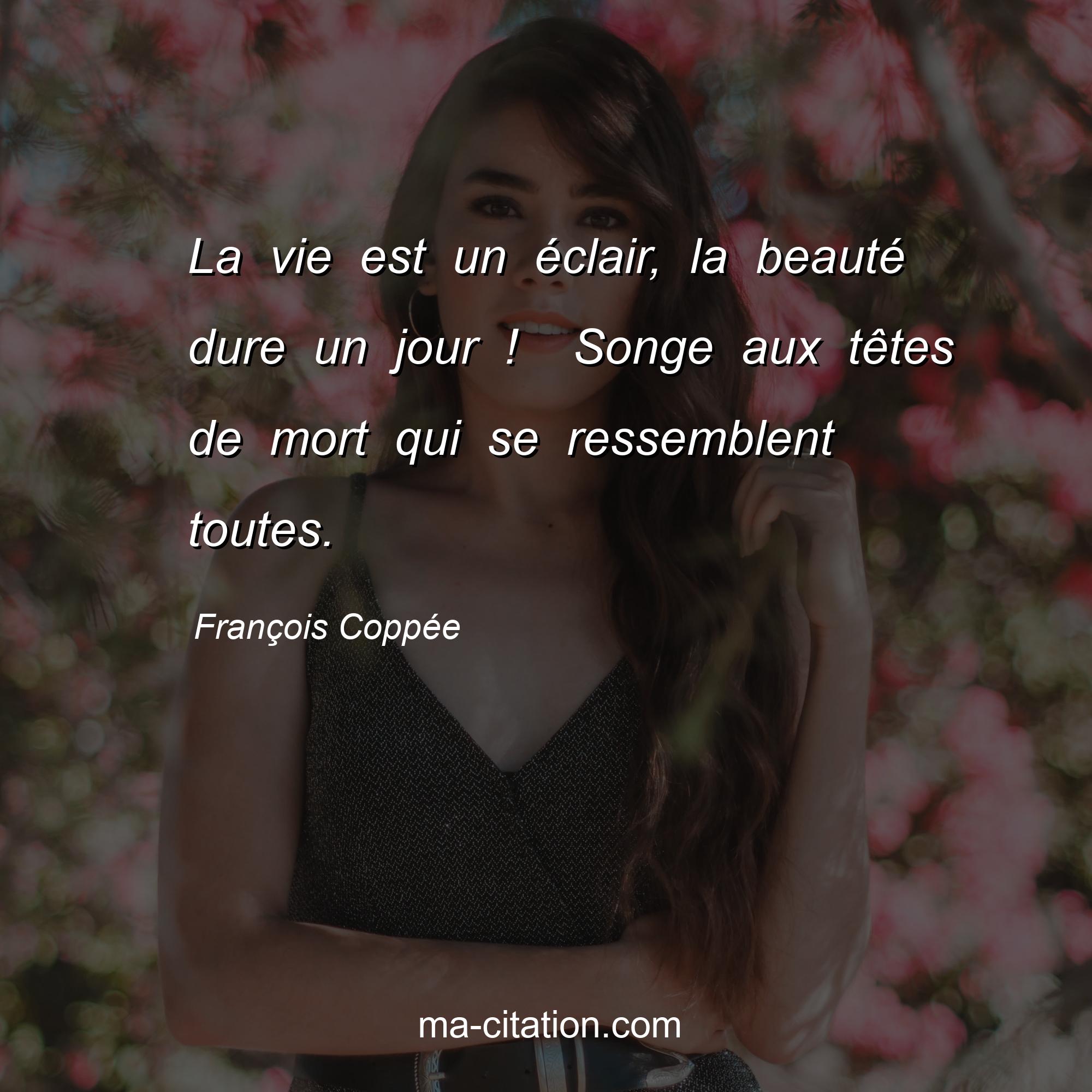 Citation sur la vie de François Coppée :La vie est un éclair, la beauté dure un jour ! Songe aux têtes de mort qui se ressemblent toutes.