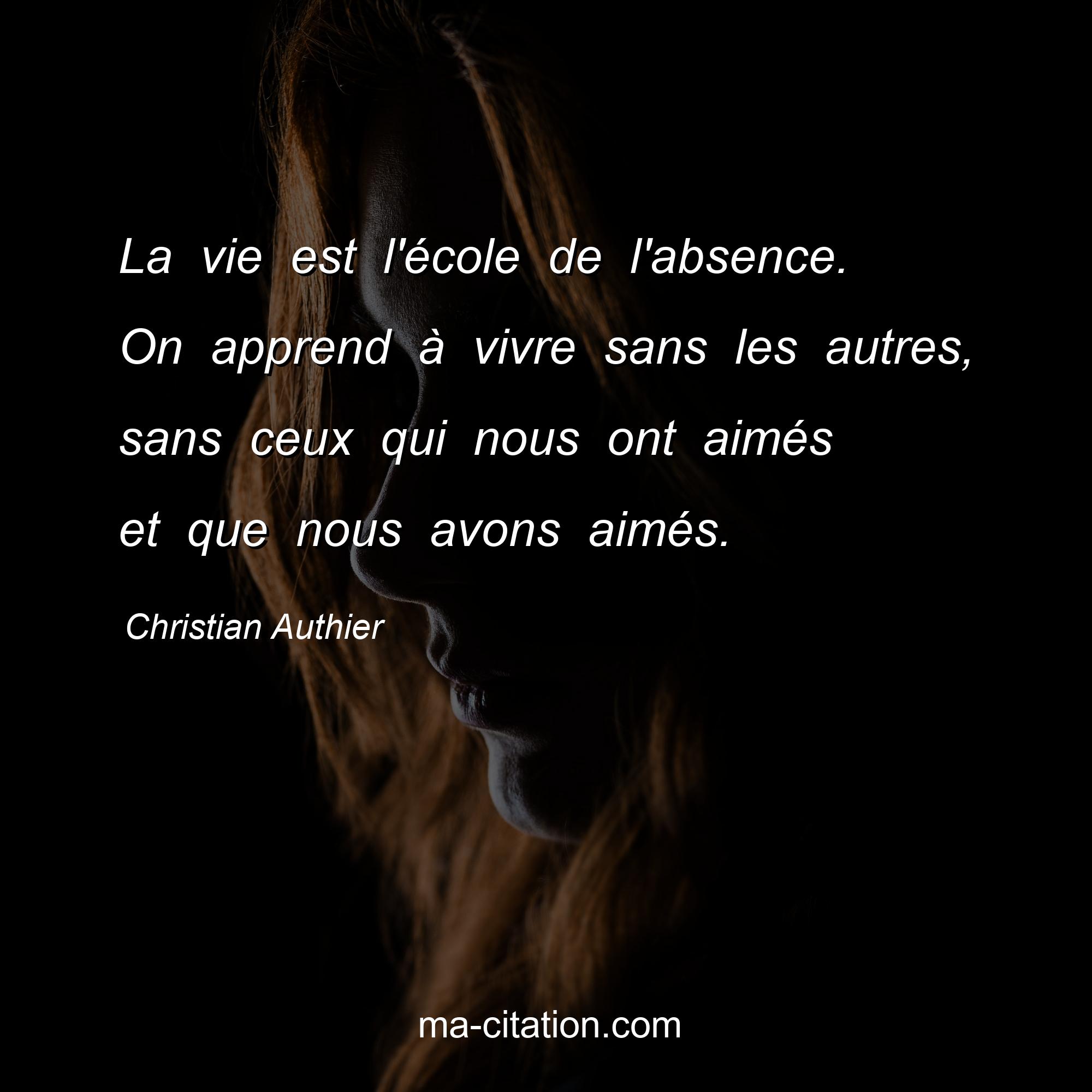 Christian Authier est l'auteur de la citation sur la vie "La vie est l'école de l'absence. On apprend à vivre sans les autres, sans ceux qui nous ont aimés et que nous avons aimés.".