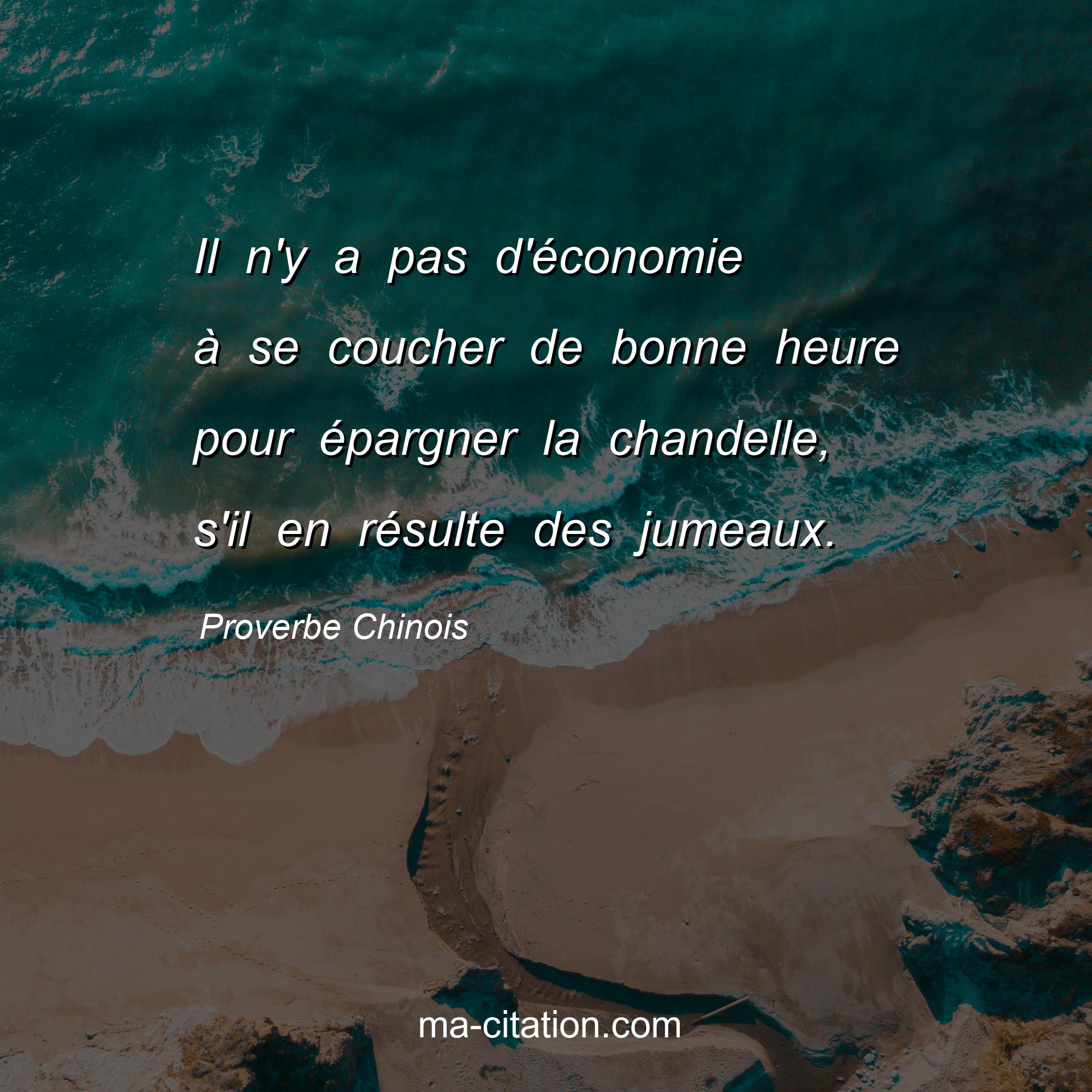 Proverbe Chinois sur la vie :Il n'y a pas d'économie à se coucher de bonne heure pour épargner la chandelle, s'il en résulte des jumeaux.