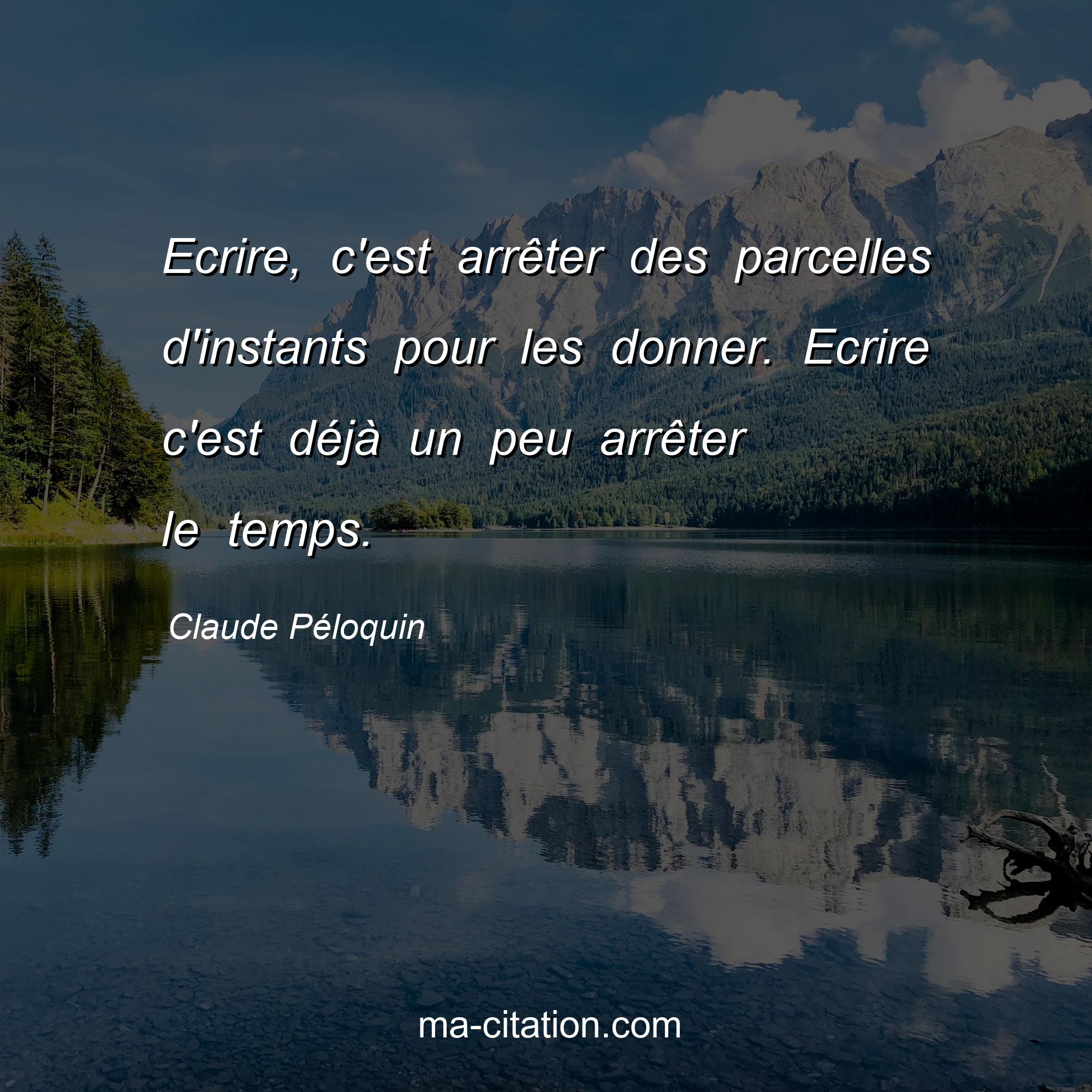 Citation sur la vie de Claude Péloquin :Ecrire, c'est arrêter des parcelles d'instants pour les donner. Ecrire c'est déjà un peu arrêter le temps.
