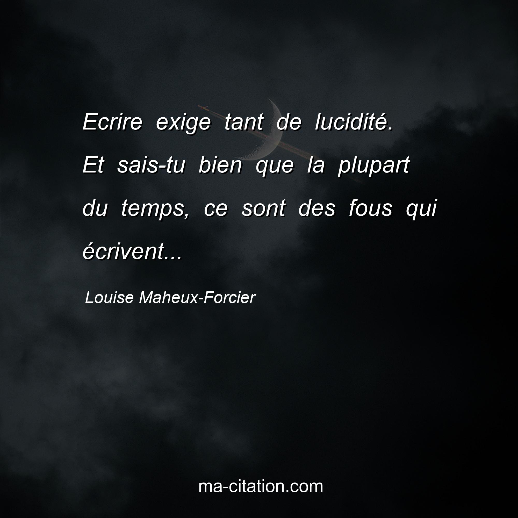 Citation sur la vie de Louise Maheux-Forcier :Ecrire exige tant de lucidité. Et sais-tu bien que la plupart du temps, ce sont des fous qui écrivent...