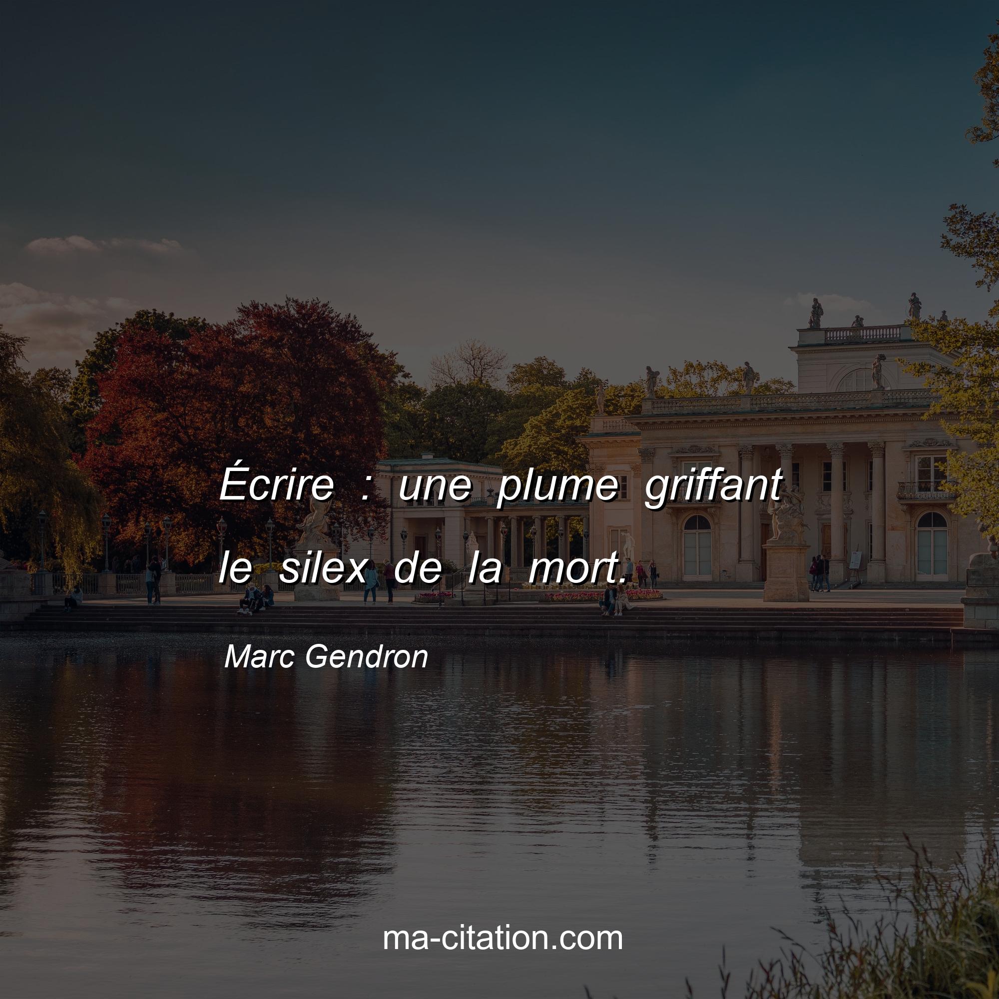 Marc Gendron est l'auteur de la citation sur la vie "Écrire : une plume griffant le silex de la mort.".
