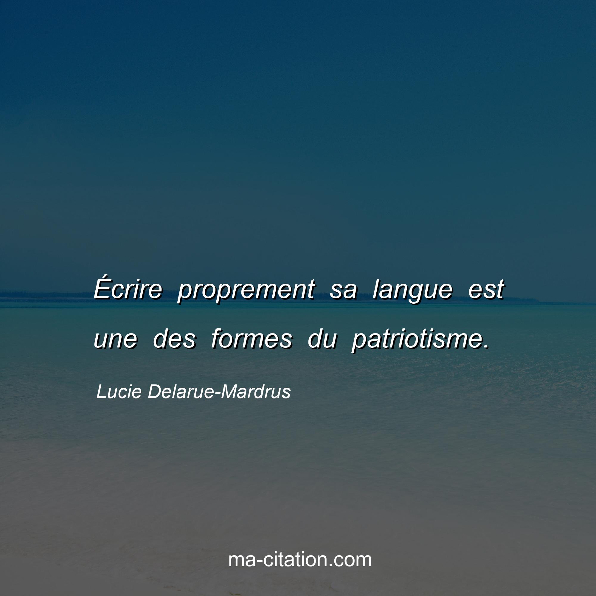 Citation sur la vie de Lucie Delarue-Mardrus :Écrire proprement sa langue est une des formes du patriotisme.