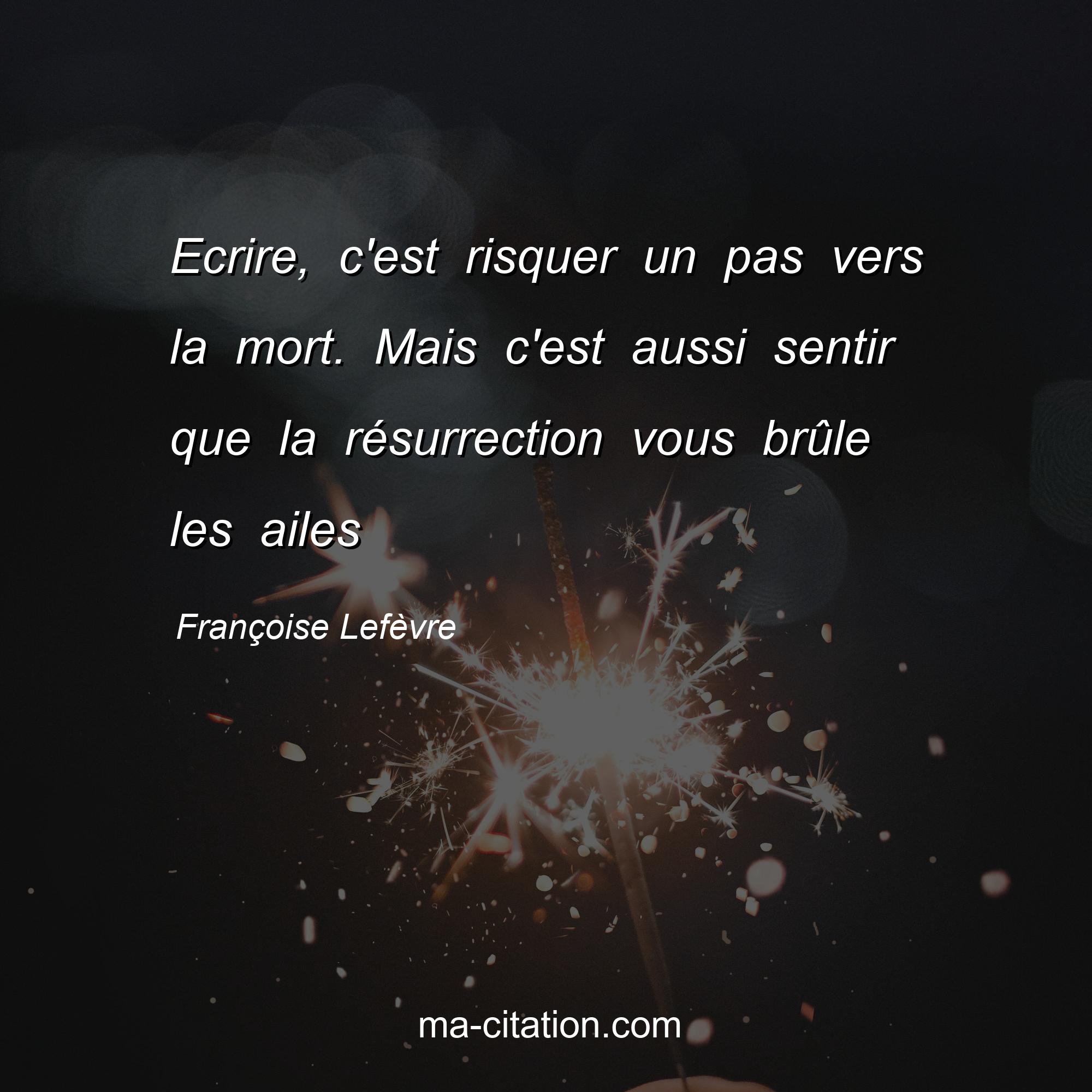 Françoise Lefèvre est l'auteur de la citation sur la vie "Ecrire, c'est risquer un pas vers la mort. Mais c'est aussi sentir que la résurrection vous brûle les ailes".