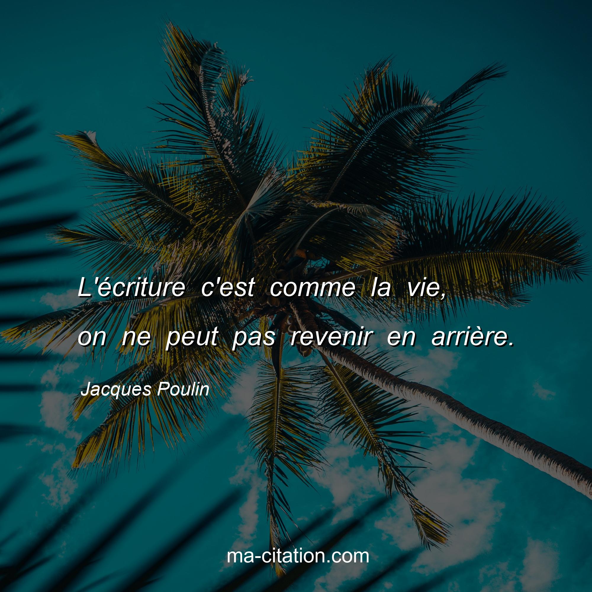 Jacques Poulin est l'auteur de la citation sur la vie "L'écriture c'est comme la vie, on ne peut pas revenir en arrière.".