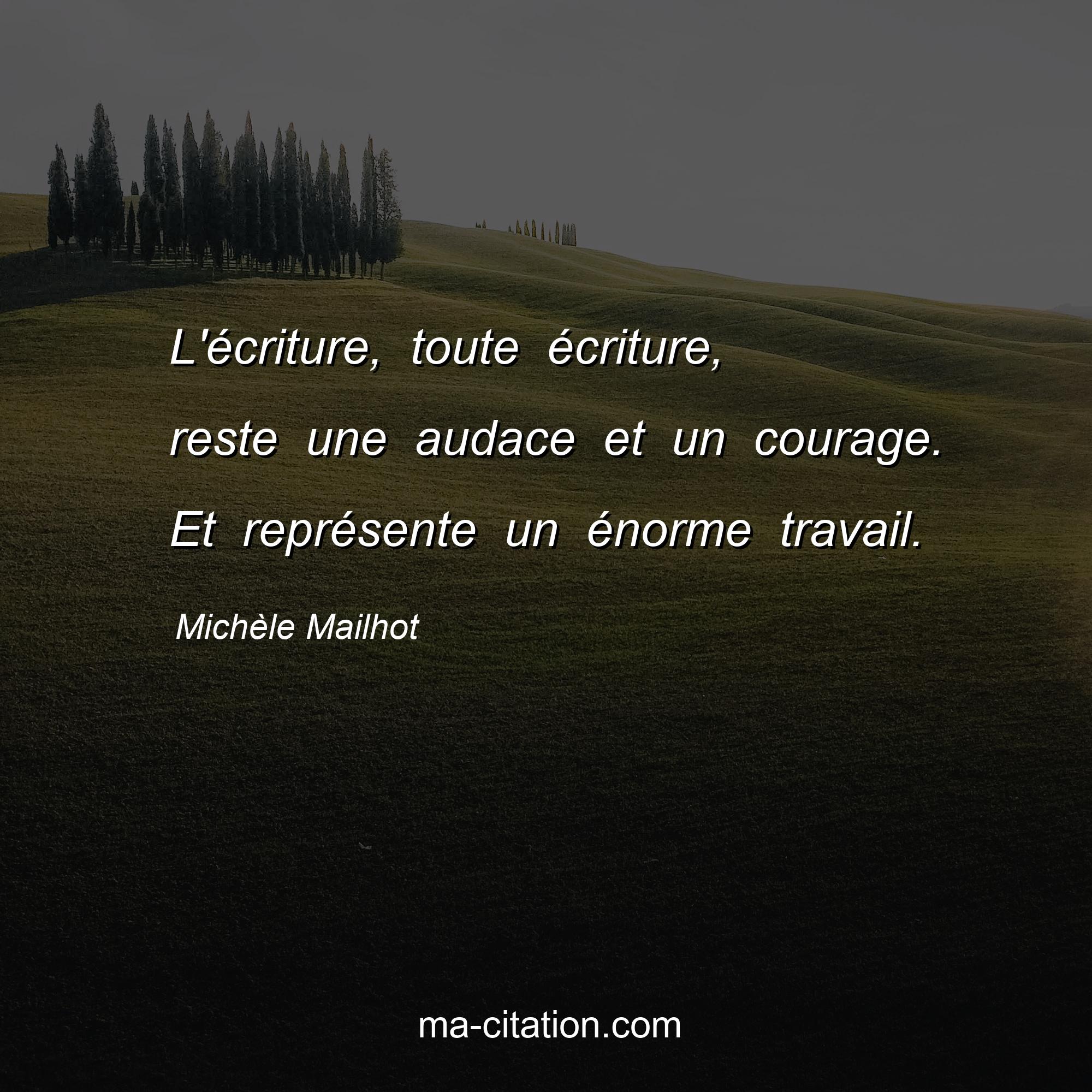 Citation sur la vie de Michèle Mailhot :L'écriture, toute écriture, reste une audace et un courage. Et représente un énorme travail.