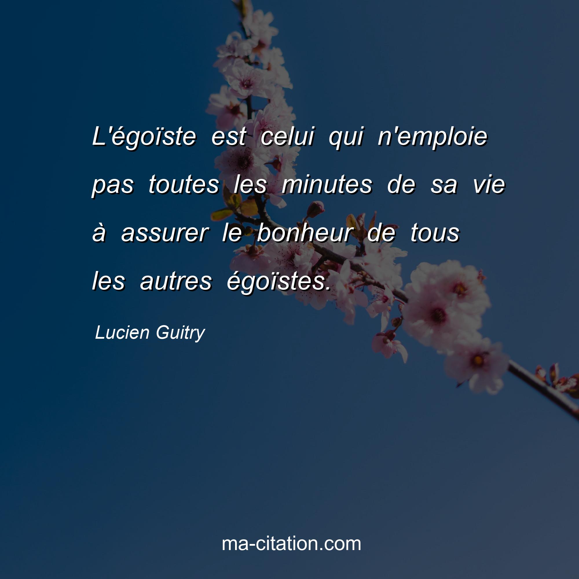Citation sur la vie de Lucien Guitry :L'égoïste est celui qui n'emploie pas toutes les minutes de sa vie à assurer le bonheur de tous les autres égoïstes.