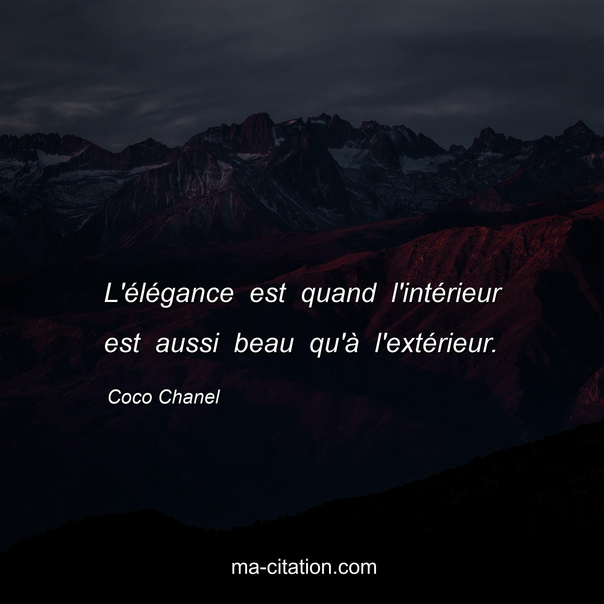 Citation sur la vie de Coco Chanel :L'élégance est quand l'intérieur est aussi beau qu'à l'extérieur.