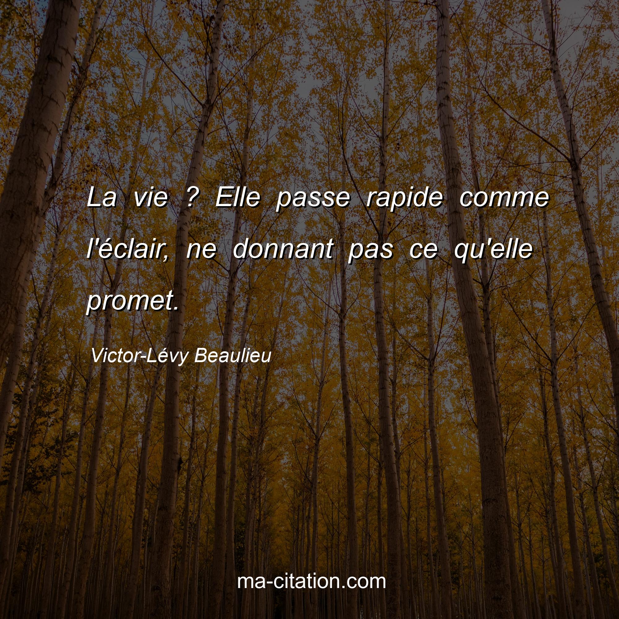 Victor-Lévy Beaulieu est l'auteur de la citation sur la vie "La vie ? Elle passe rapide comme l'éclair, ne donnant pas ce qu'elle promet.".
